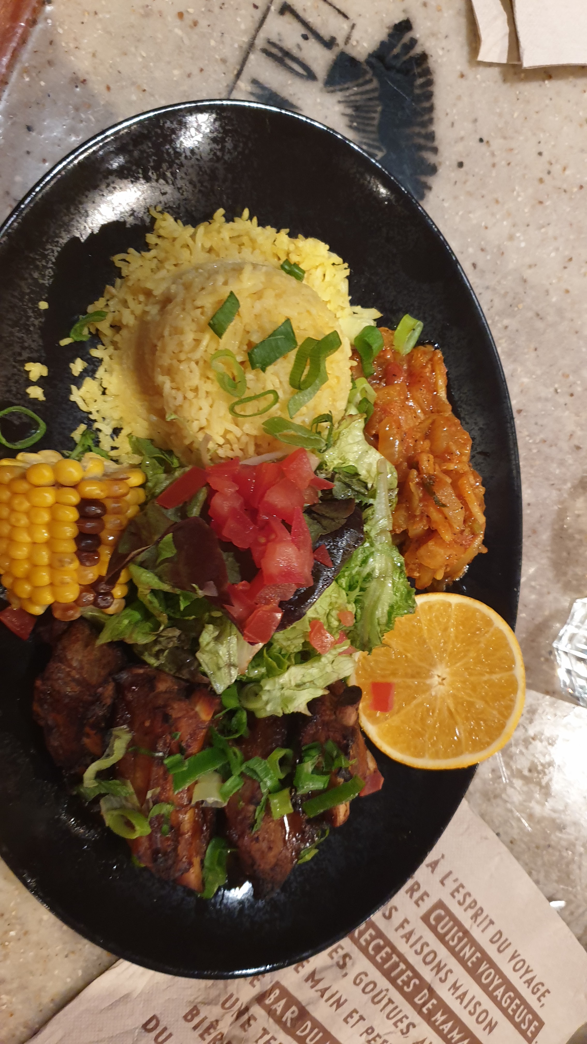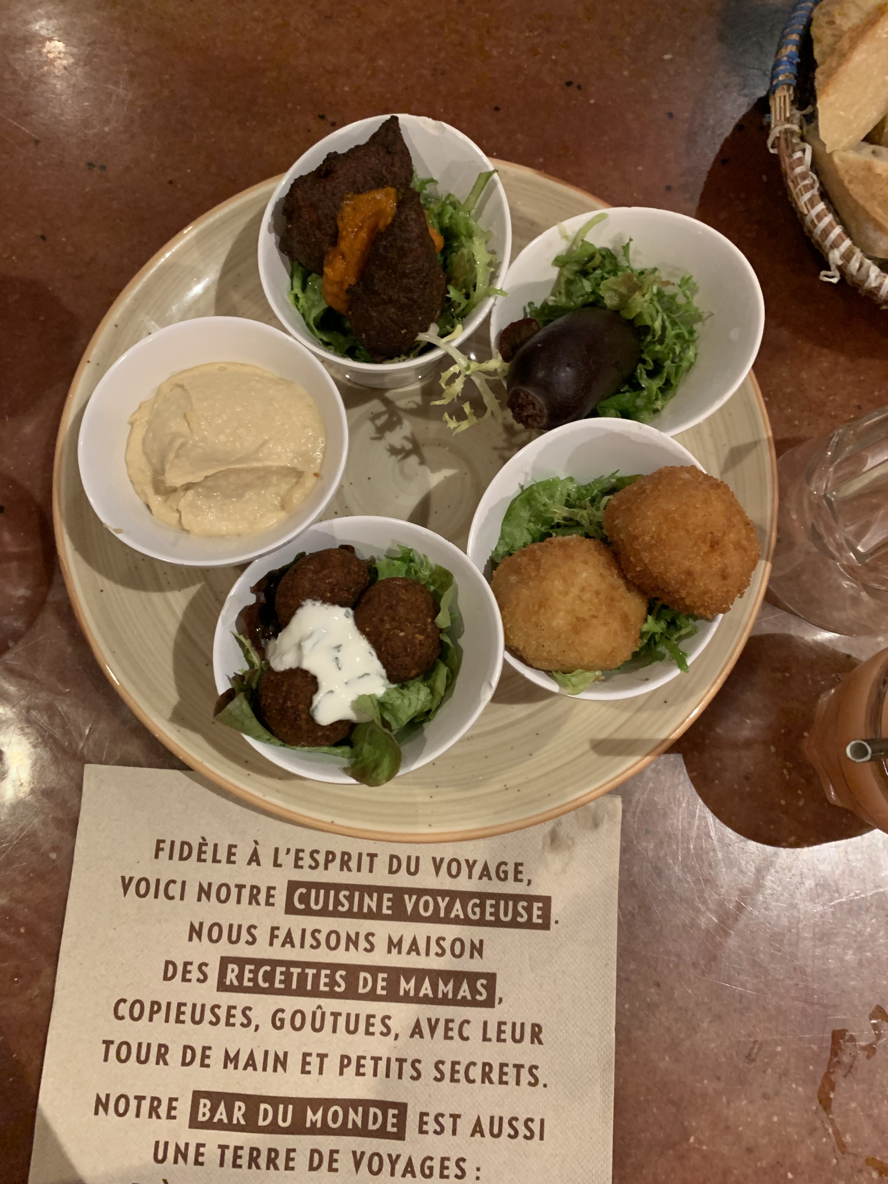 Carte super originale, de quoi manger varié et exotique. Des plats du monde avec possibilité de tester plusieurs choses en composant son assiette. Prix raisonnables et service agréable. A tester au moins une fois et on a envie d'y retourner pour goûter le reste.