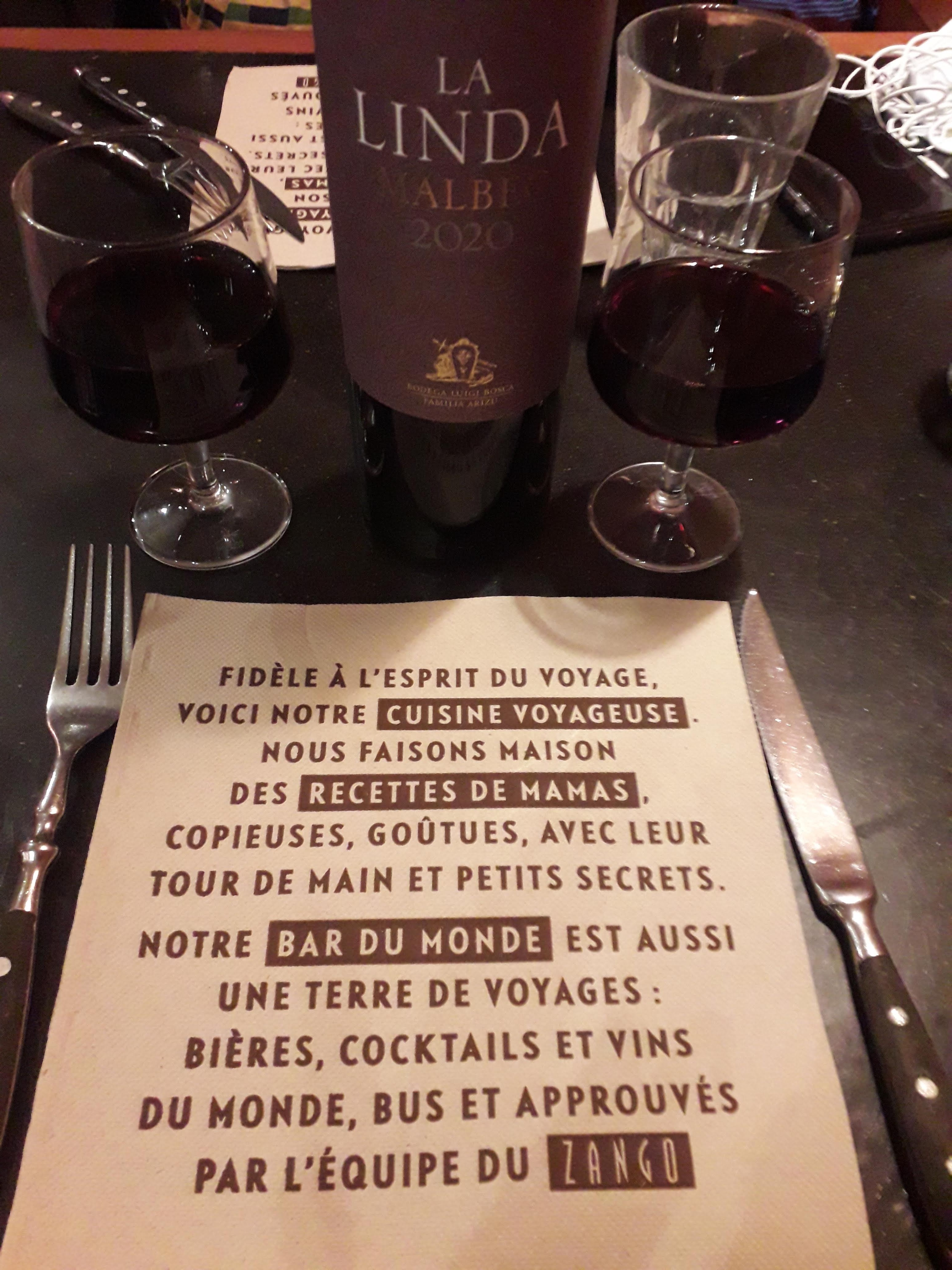 Nous avons passé un très bon moment au Zango ! La cuisine y est délicieuse et le service est très agréable. Un endroit sympa pour découvrir la cuisine du monde en famille ou entre amis. Attention aux personnes qui ne supportent pas les plats pimentés 😉