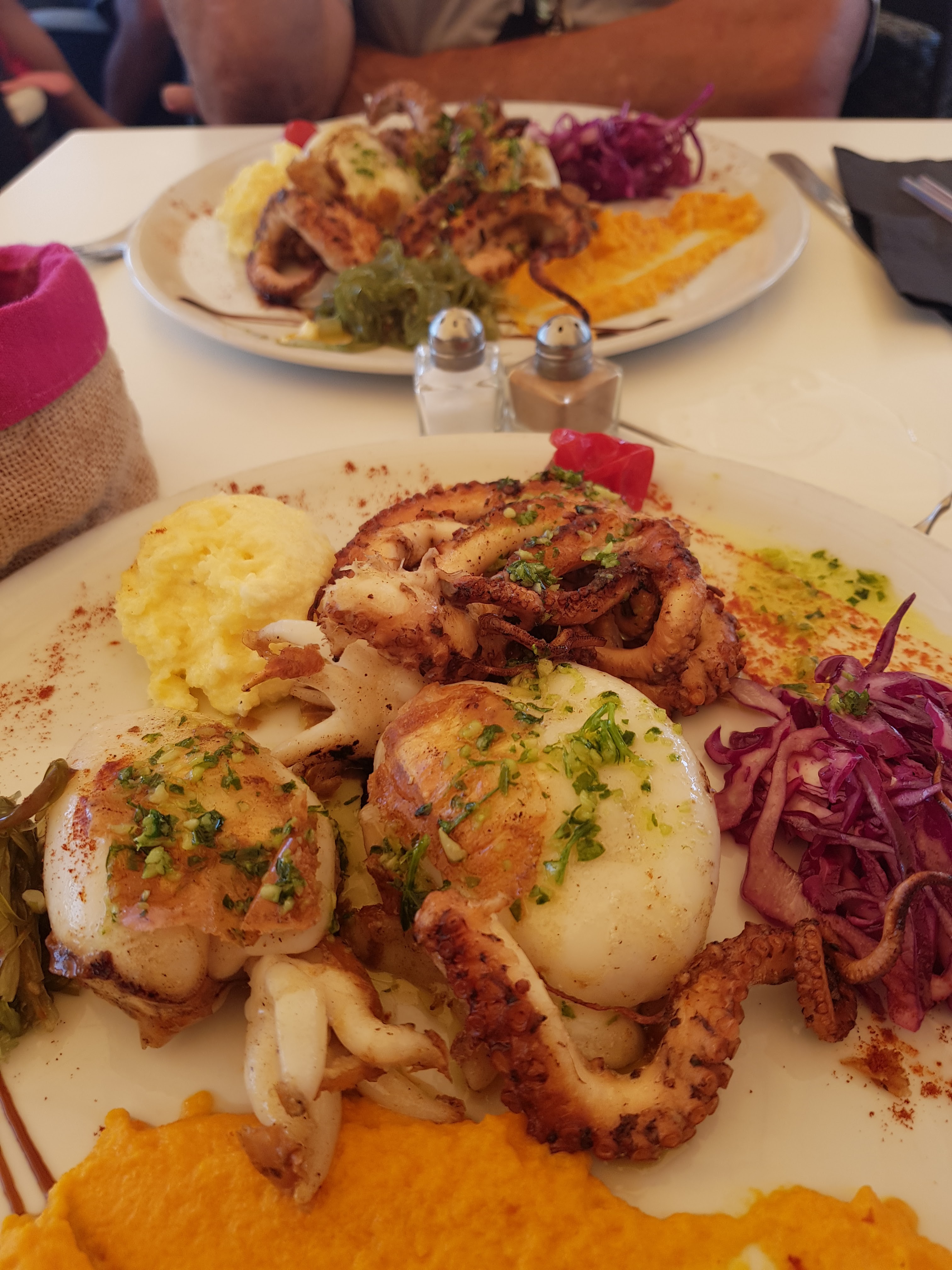 Topissime. Salade avec poulpe et sèches à la plancha, un régale ! Et le service au petit soin. Je changerai pas d'adresse si je retourne à Sausset ! Je conseille au propriétaire de mettre un peu plus le nom du restaurant en avant ! Je lai vu nulle part et j'ai même cru qu'il avait le nom du restaurant d'à côté ou à la base je devais aller. Heureusement que je me suis trompé car c'était une très bonne découverte.