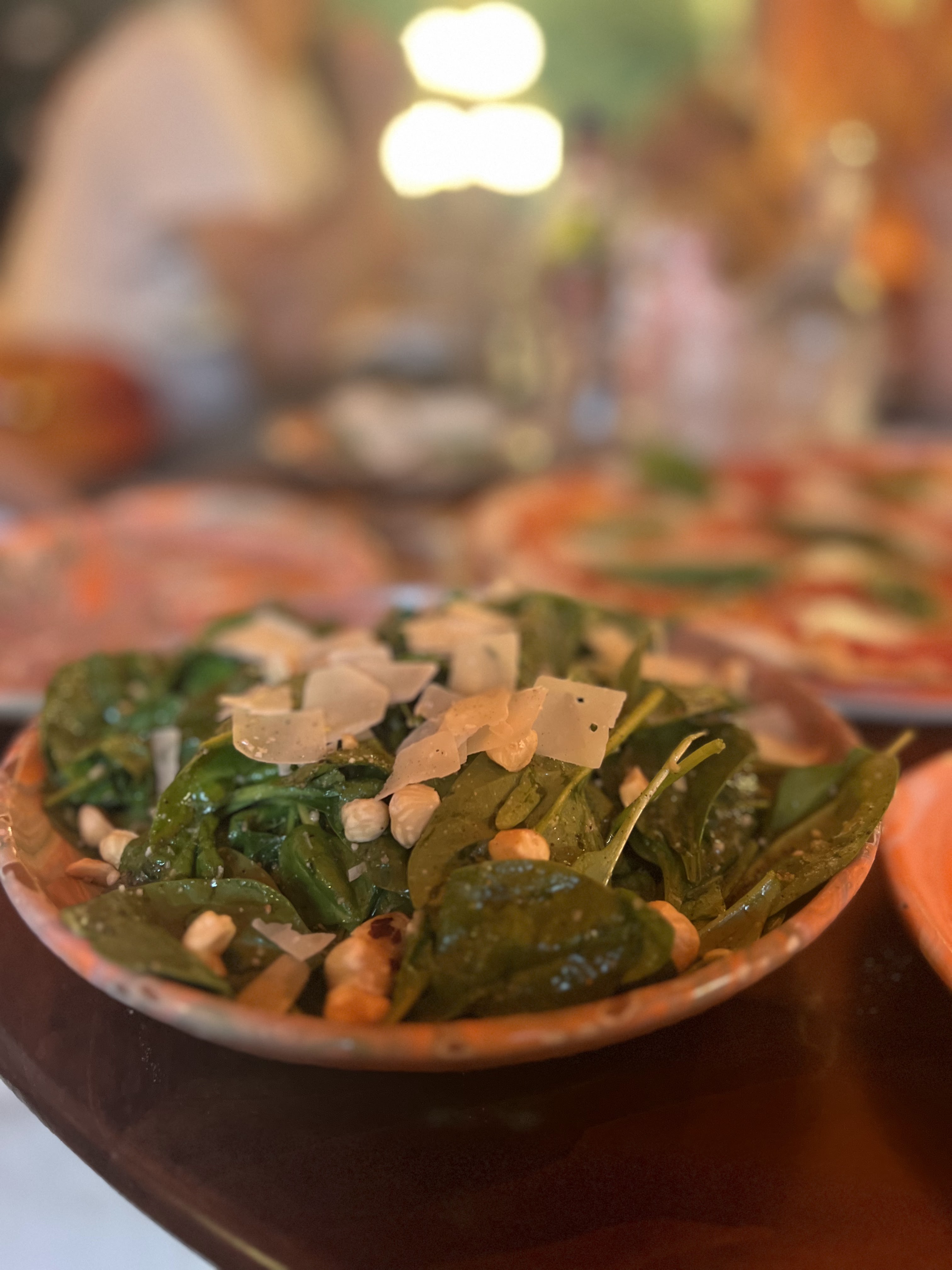 pizza à pate fine (rare à Paris) excellente.Salade épinards parfaite. équipe jeune, dynamique, trés attentionnée et 100% italienne.Spritz très bien dosé; beau cadre année 70, musique sympa. Bravo
