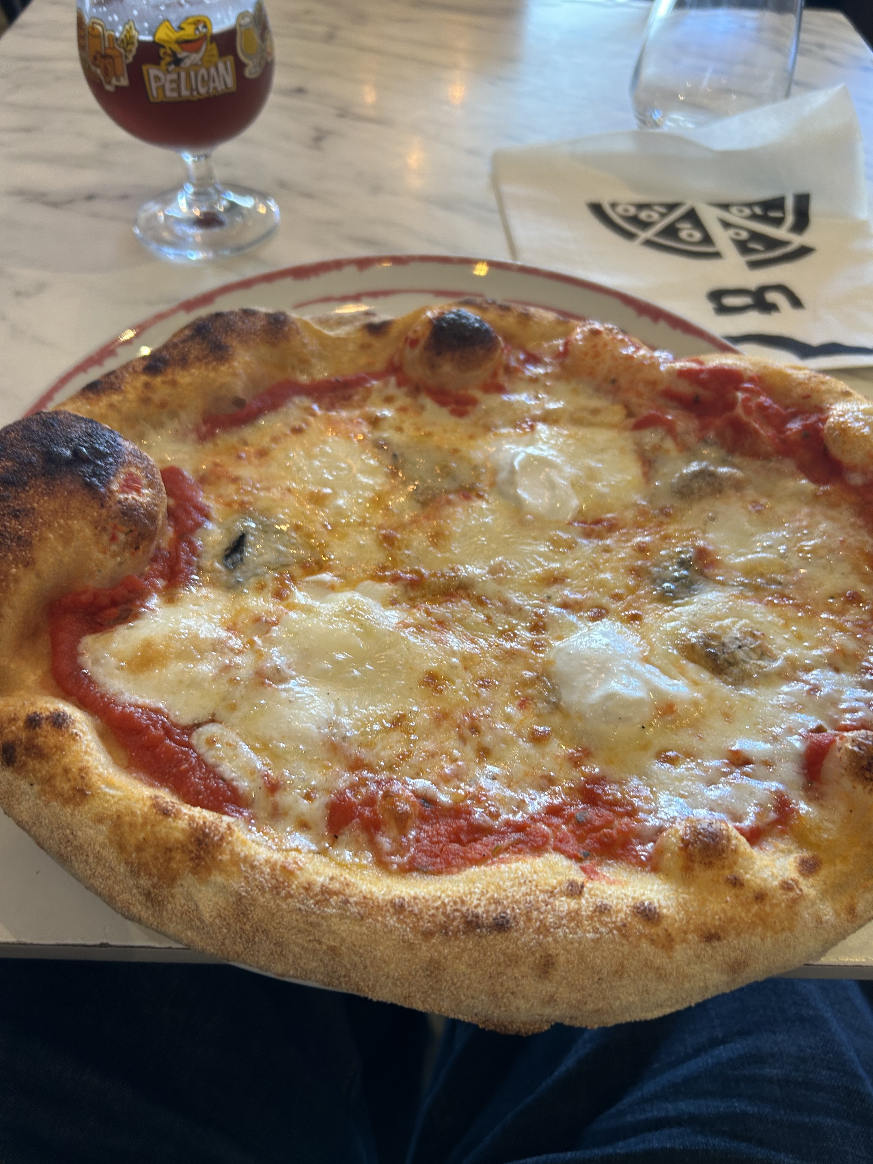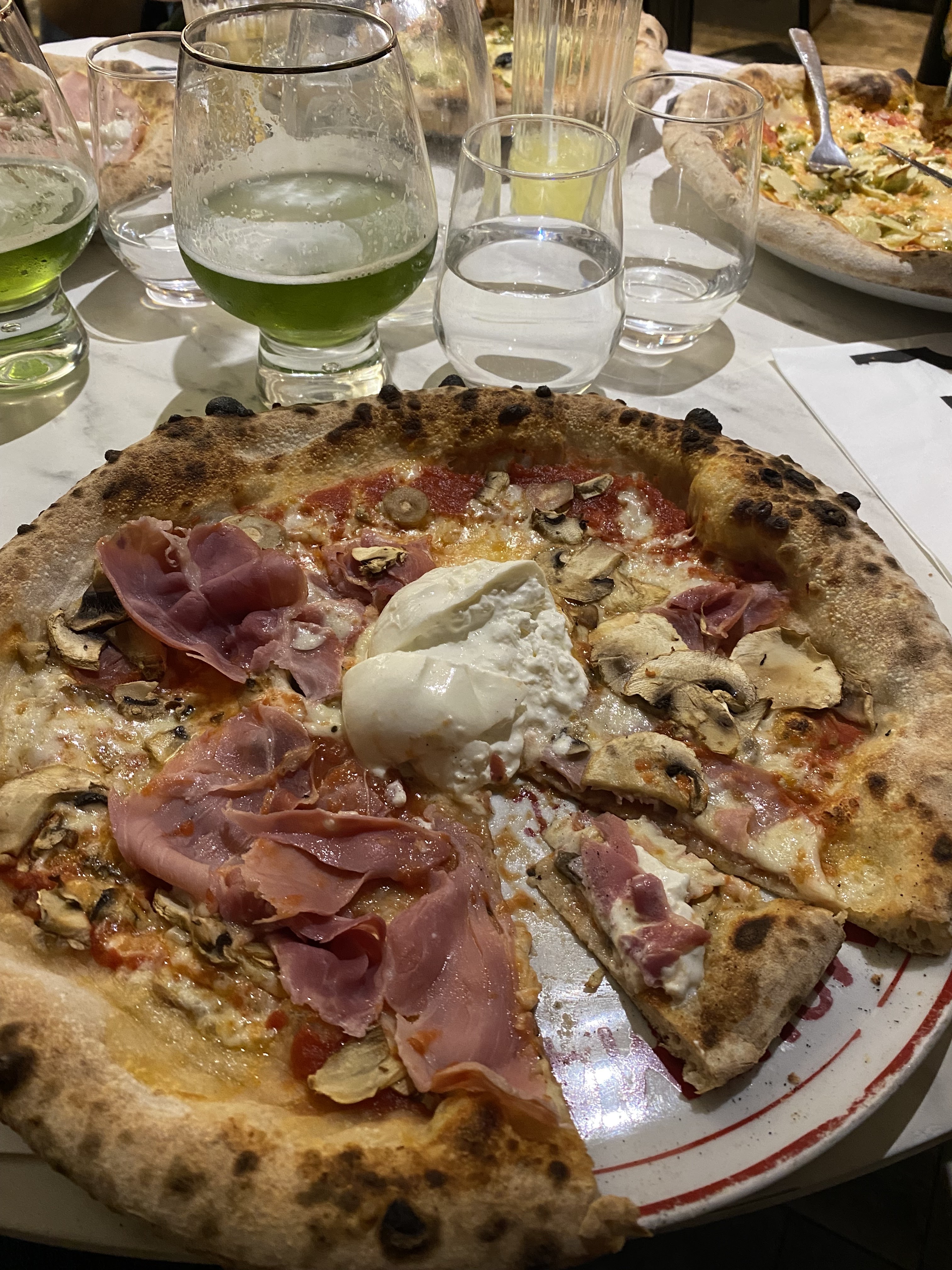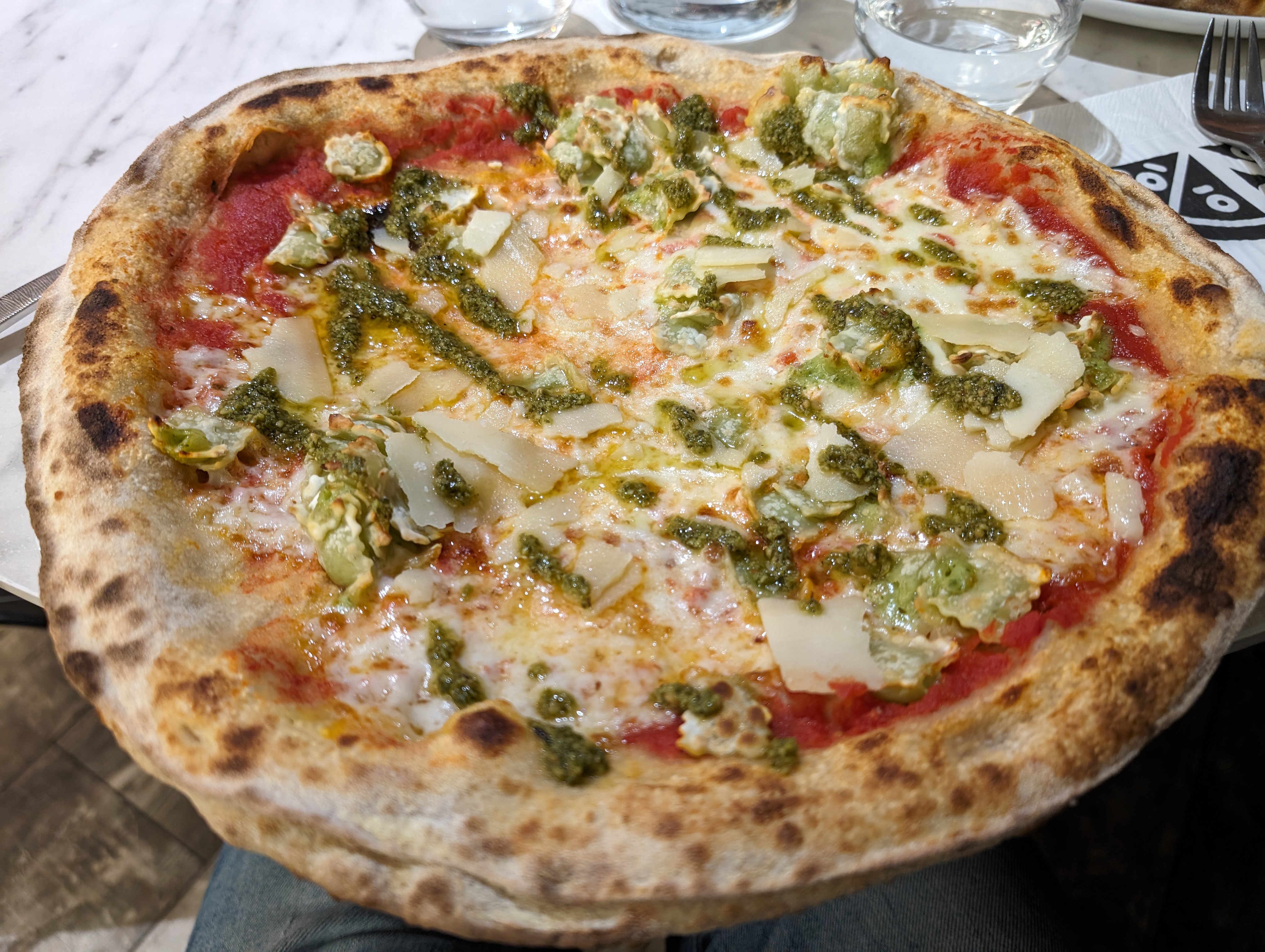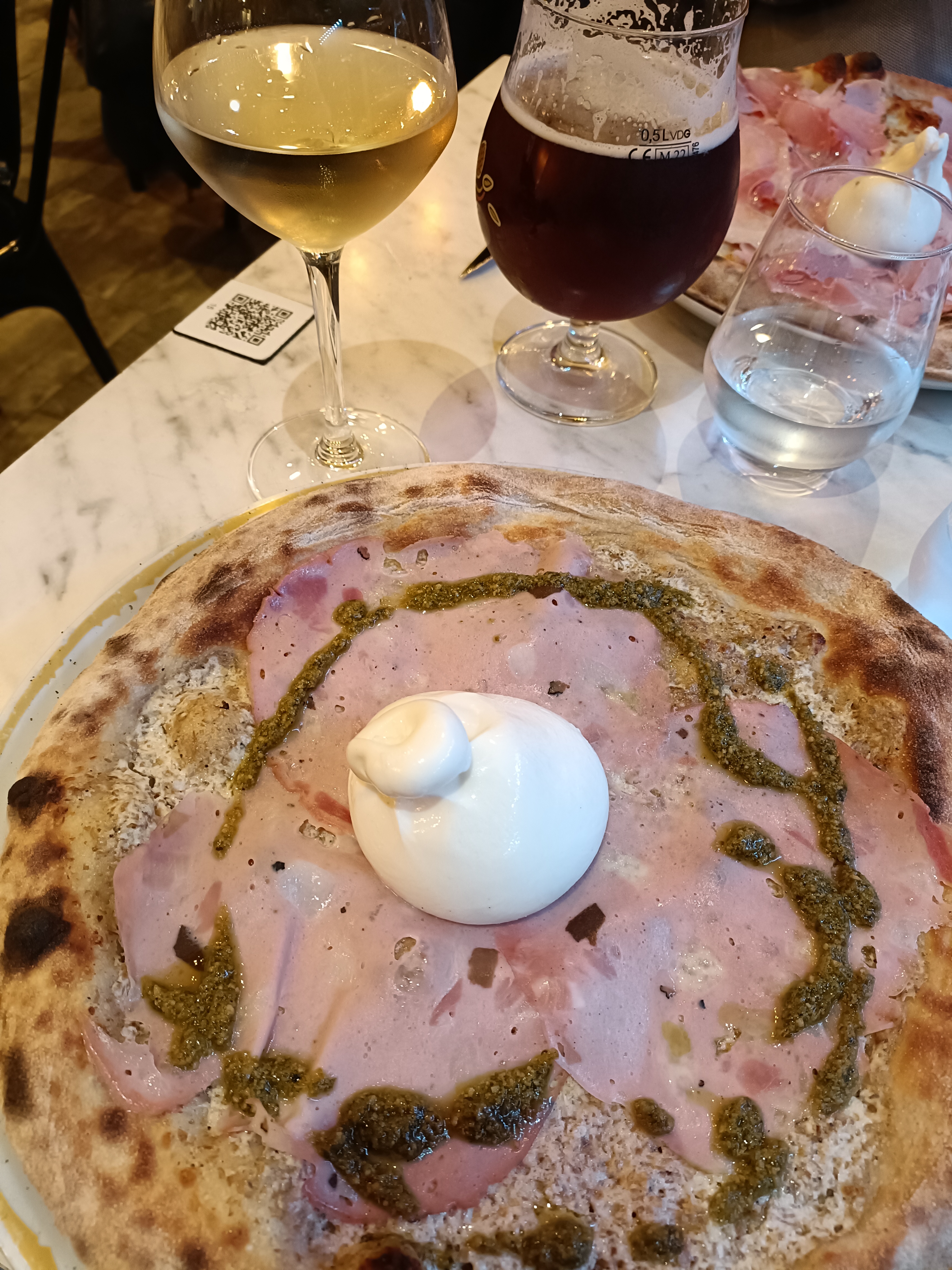 Juste délicieux. J'ai mangé une des meilleures pizzas de ma vie la génoa je crois base crème raviole mozza tomate parmesan c'était juste sublimissime