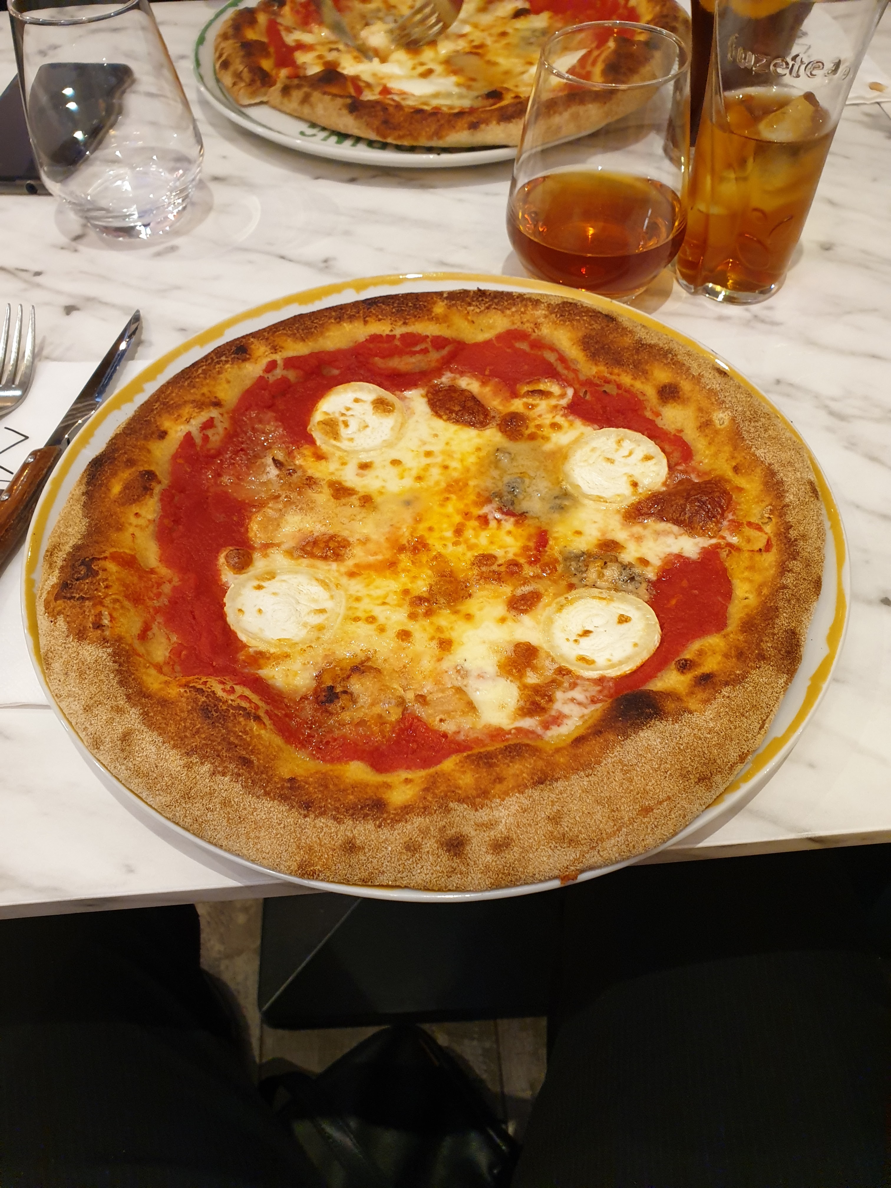 Superbe restaurant avec des ingrédients et un service d’une qualité rare. Un vrai savoir faire, une bonne ambiance, une belle salle et une bonne odeur de pizze cuites au feu de bois. On m’a dit que la pâte était très bonne ! Quant à moi, je suis venue spécialement pour une pizza sans gluten, et j’ai été ravie de ce qu’il y avait dessus (ingrédients frais et délicieux) mais j’ai été assez étonnée par la pâte, qui me faisait plus penser à une focaccia (elle est gonflée, moelleuse, non croustillante et avec un fort goût d’huile d’olive). De plus, la pizza est plus chère et plus petite ! Je n’ai rien à dire quant a l’expérience en général, c’était génial et très bon, mais je tiens à prévenir ceux qui viennent pour le sans gluten, c’est particulier !