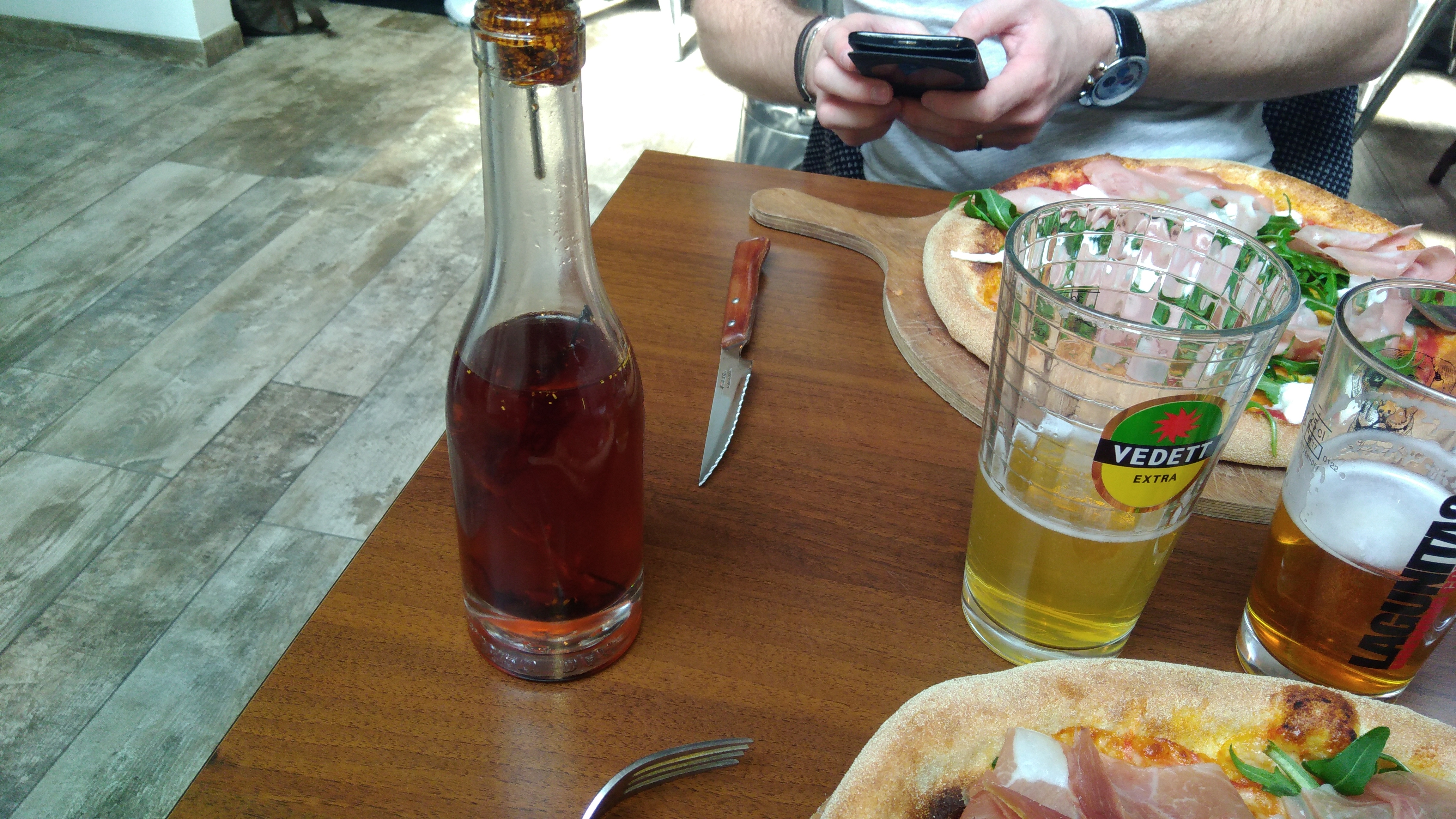 J'ai réservé une table pour 13h15. La commande de pizza s'est faite rapidement car le four s'arrêtait à 14h. L'apéritif a suivi. À peine servi, les pizzas nous ont été apportées. Les quelques clients (manifestement au fait des contraintes de la maison) partaient et nous étions quasiment les seuls dans la salle. Notre présence a manifestement était supportée jusqu'à 14h45. la fin de tout le service étant 14h30. Dommage que de tels délais soient imposés et ne permettent pas vraiment de profiter de ces bons moments de convivialité.