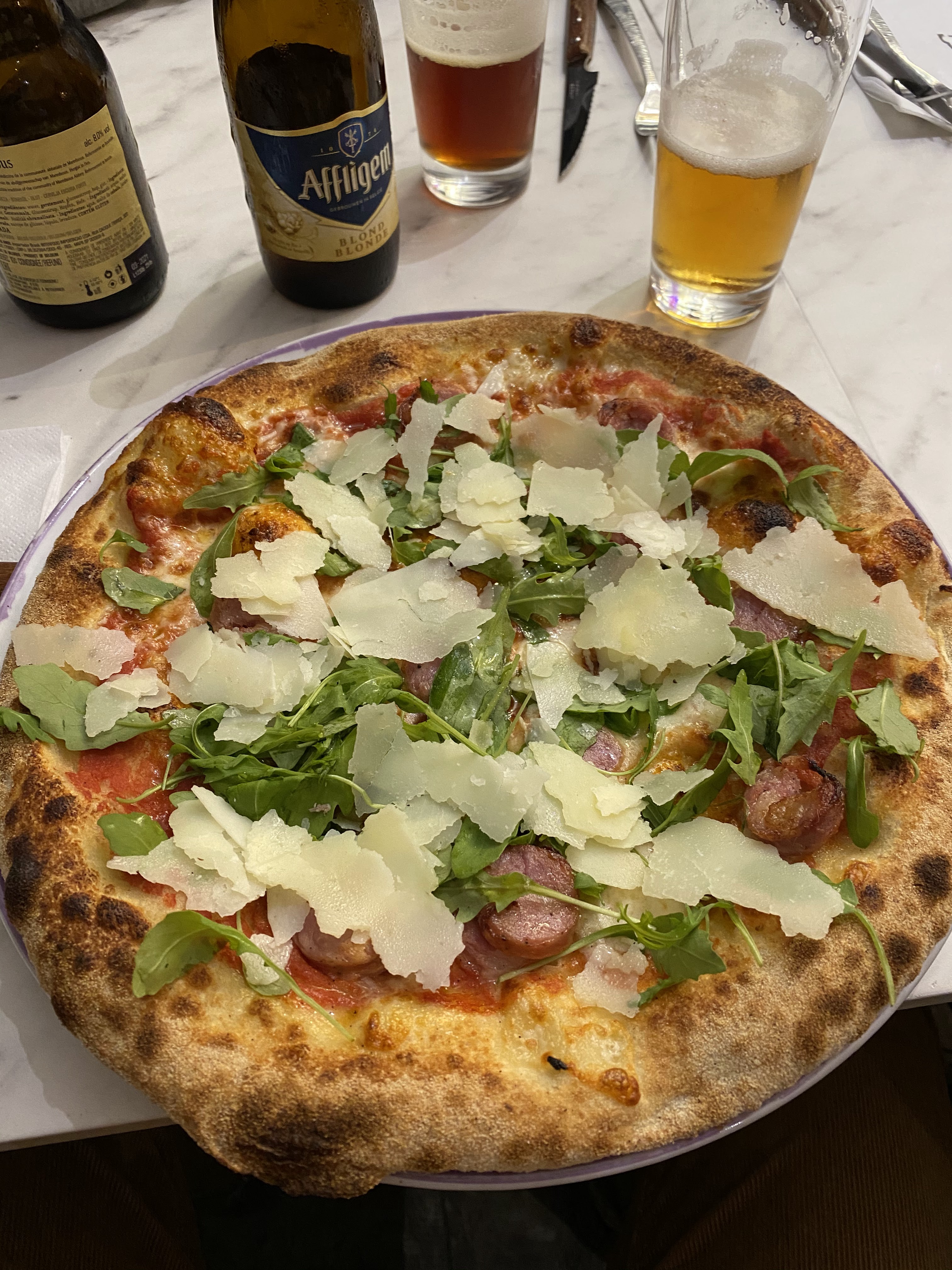 Pizza à tomber par terre. C'était vraiment délicieux ! Des produits frais, de la charcuterie italienne plus que parfaite. Ils proposent également il large choix de bière belges et autres en bouteille.
