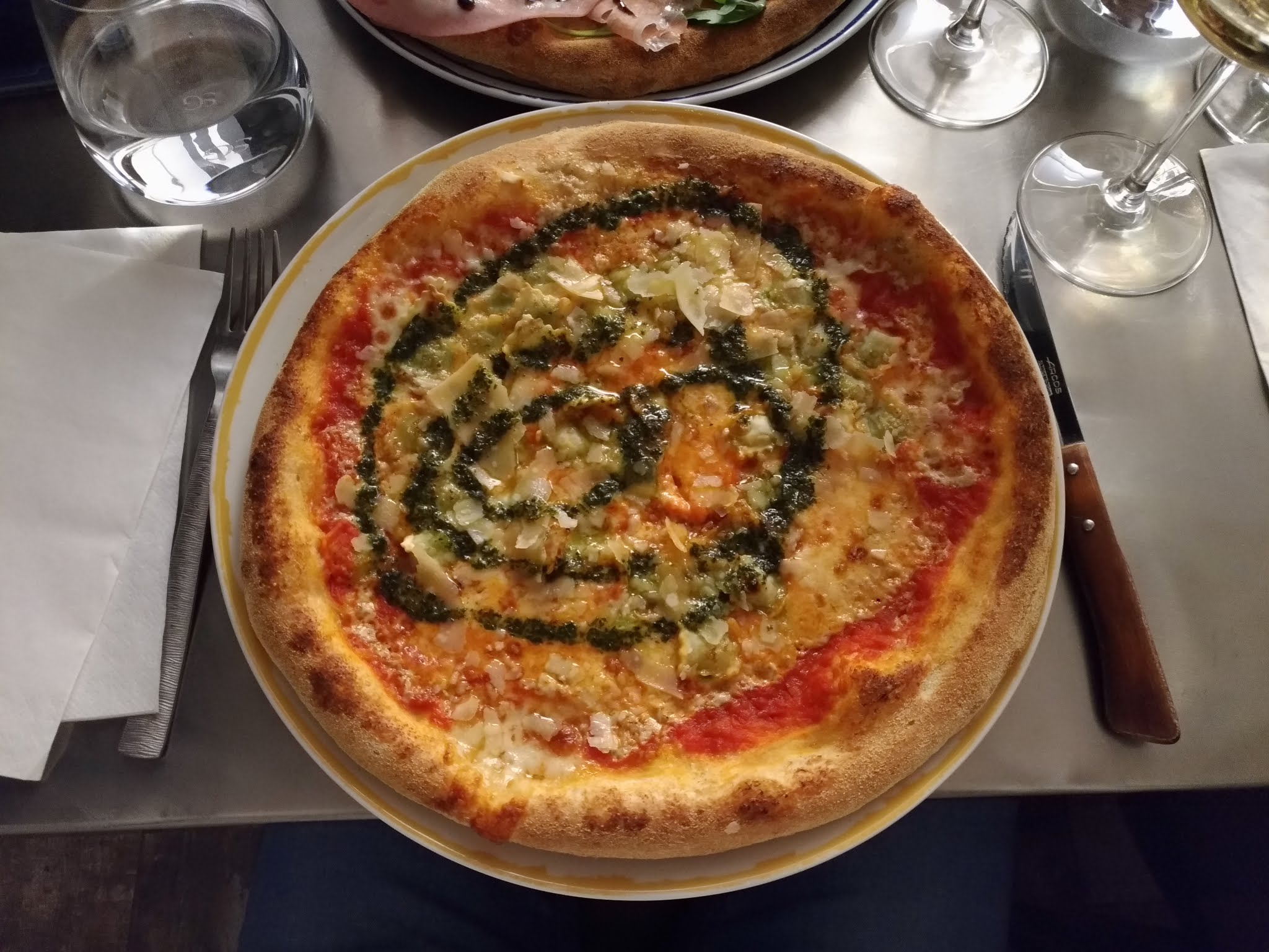 Une bonne pâte cuite au feu de bois et une bonne garniture généreuse, c’est une première expérience convaincante dans ce restaurant. J’ai aussi apprécié la carte extensive et l’amabilité du personnel. Il y règne une bonne ambiance.