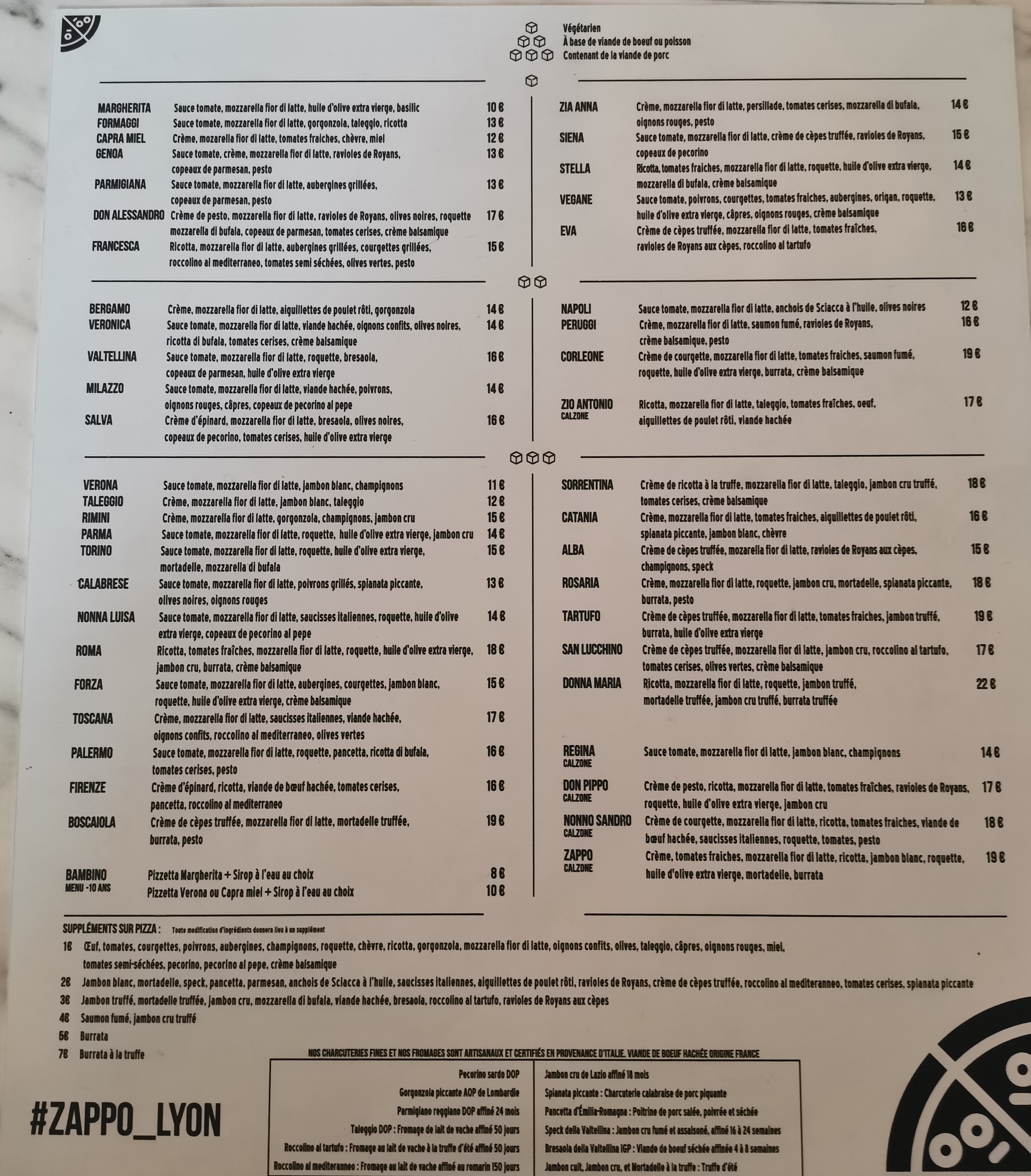 Les pizzas sont délicieuses : pâte moelleuse comme une brioche. les ingrédients sont de très bonne qualité. les pizzas sont bien garnies. on n'est jamais déçu !! Les serveurs sont supers gentils et accueillants. on est toujours très content d'aller à Zappo pour manger sur place ou à emporter.