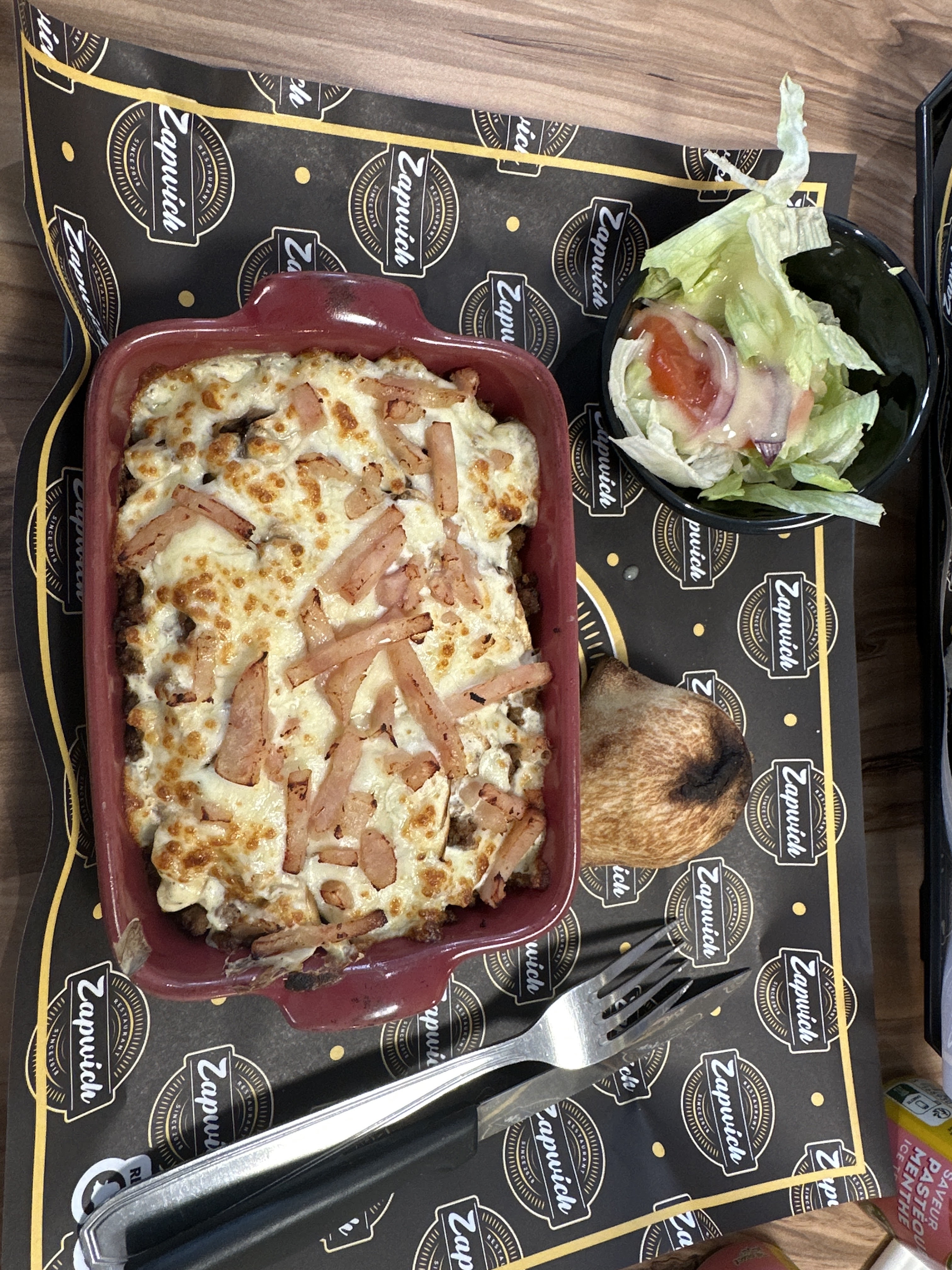 6 decembre. Gratin forestier j’ai reçu ça, c'était sec et pas de crème etc dommage mais livreur uber eat au top koray t’assures 👍🏽👍🏽