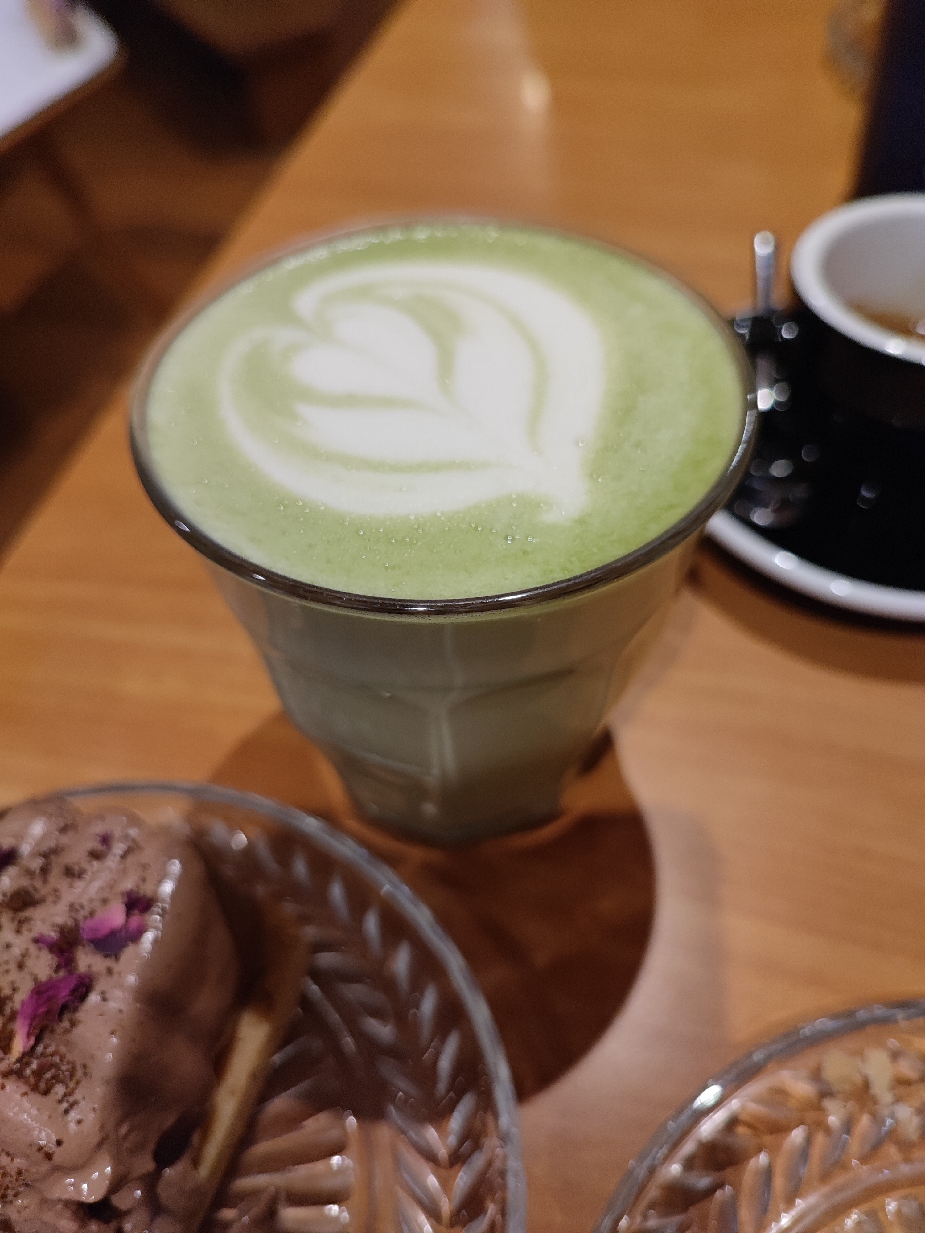 Déjà l’accueil est au top. Je suis plutôt timide et du coup j’ai du mal à faire ma commande. En face de ça le personnel est à chaque fois très patient. Et a le sourire ! Ça fait plaisir. Ensuite, ils servent des cafés au lait d’avoine ! Et pour les fans de café qui préfère le lait végétal c’est génial. Leur matcha latte glacé est aussi très bon. Et leurs pâtisseries en plus d’être très instagramable sont très bonnes. C’est top Rien a dire Ah est la déco est grave cool ⭐️