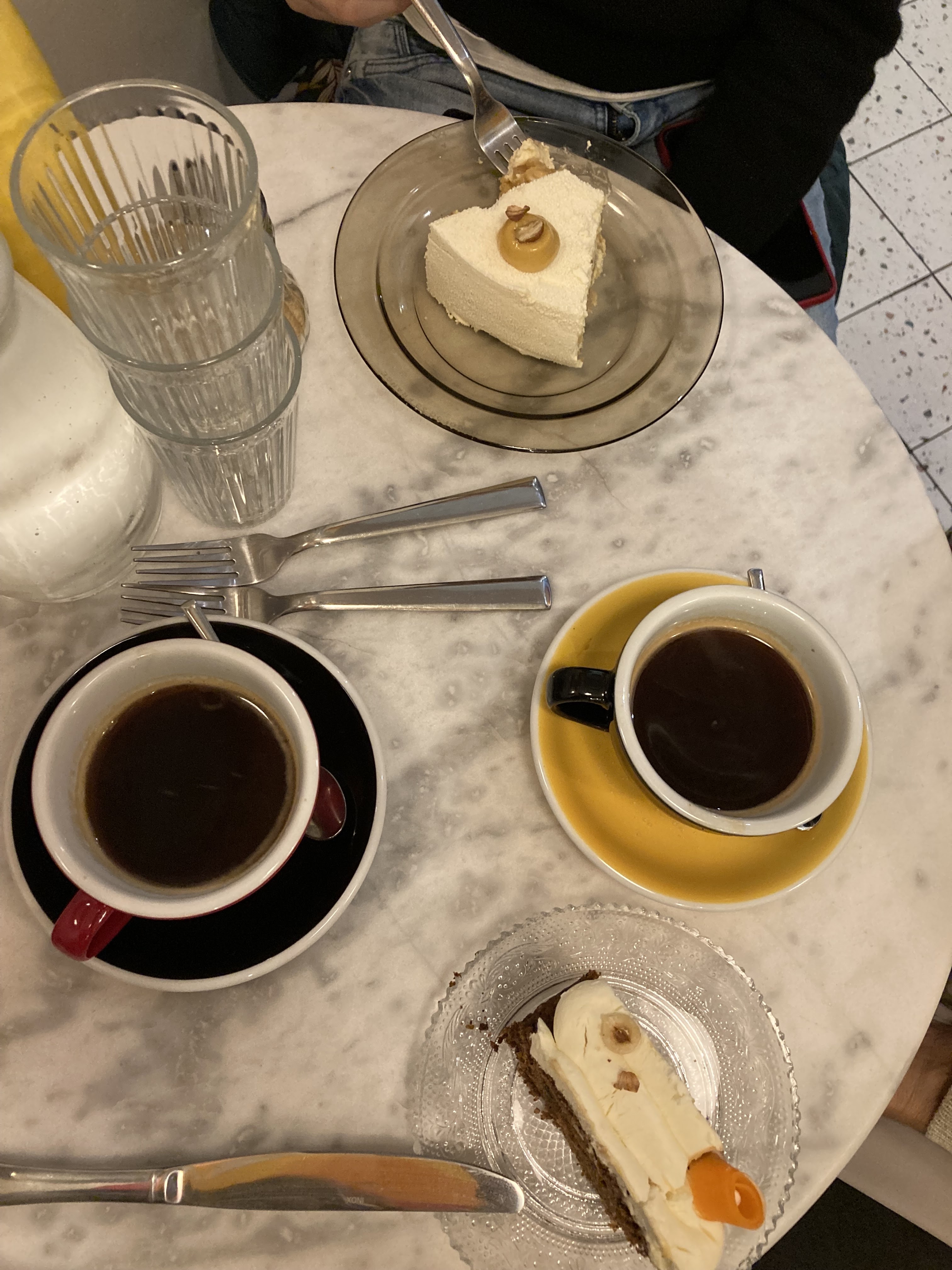 Bon accueil et ambiance très sympa. Les cafés sont bons mais les desserts qu’on a pris avaient rien de spécial Le Carrot cake était sec et avait du cream cheese salé (?) et l’entremet aussi avec une pate salé, globalement pas très bons les desserts