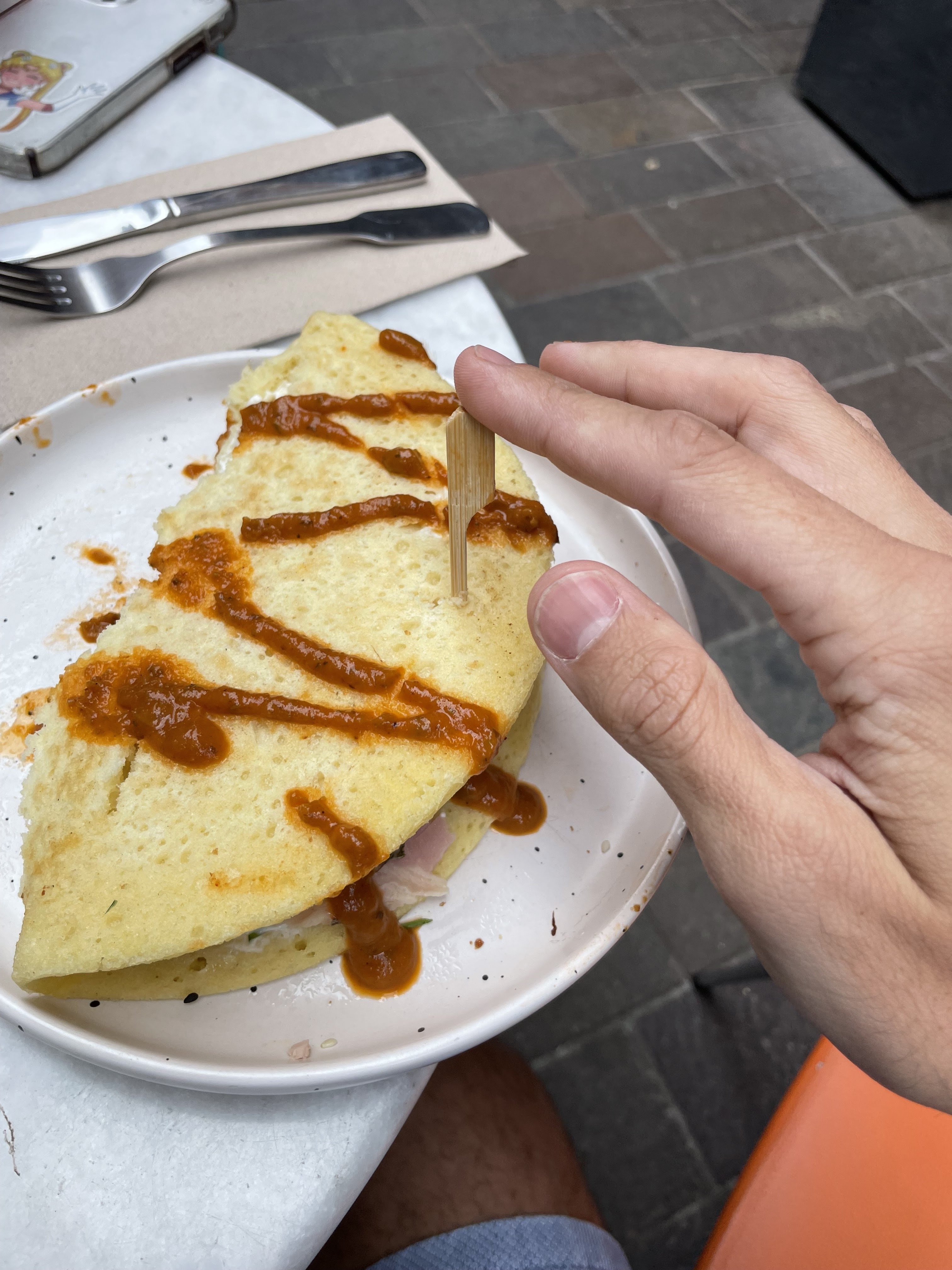Super endroit, avec une nourriture délicieuse! J'ai tellement aimé les crêpes. Ils étaient super savoureux et créatifs. J'ai essayé l'option végétarienne avec un œuf supplémentaire ! Le café était également très bon. J'ai également été très satisfait du service du personnel. Ils étaient super sympathiques et polis. J'ai aussi essayé le roulé à la cannelle qui était un peu sec à mon goût mais quand même savoureux ! :) Je recommande totalement cet endroit !! ❤️