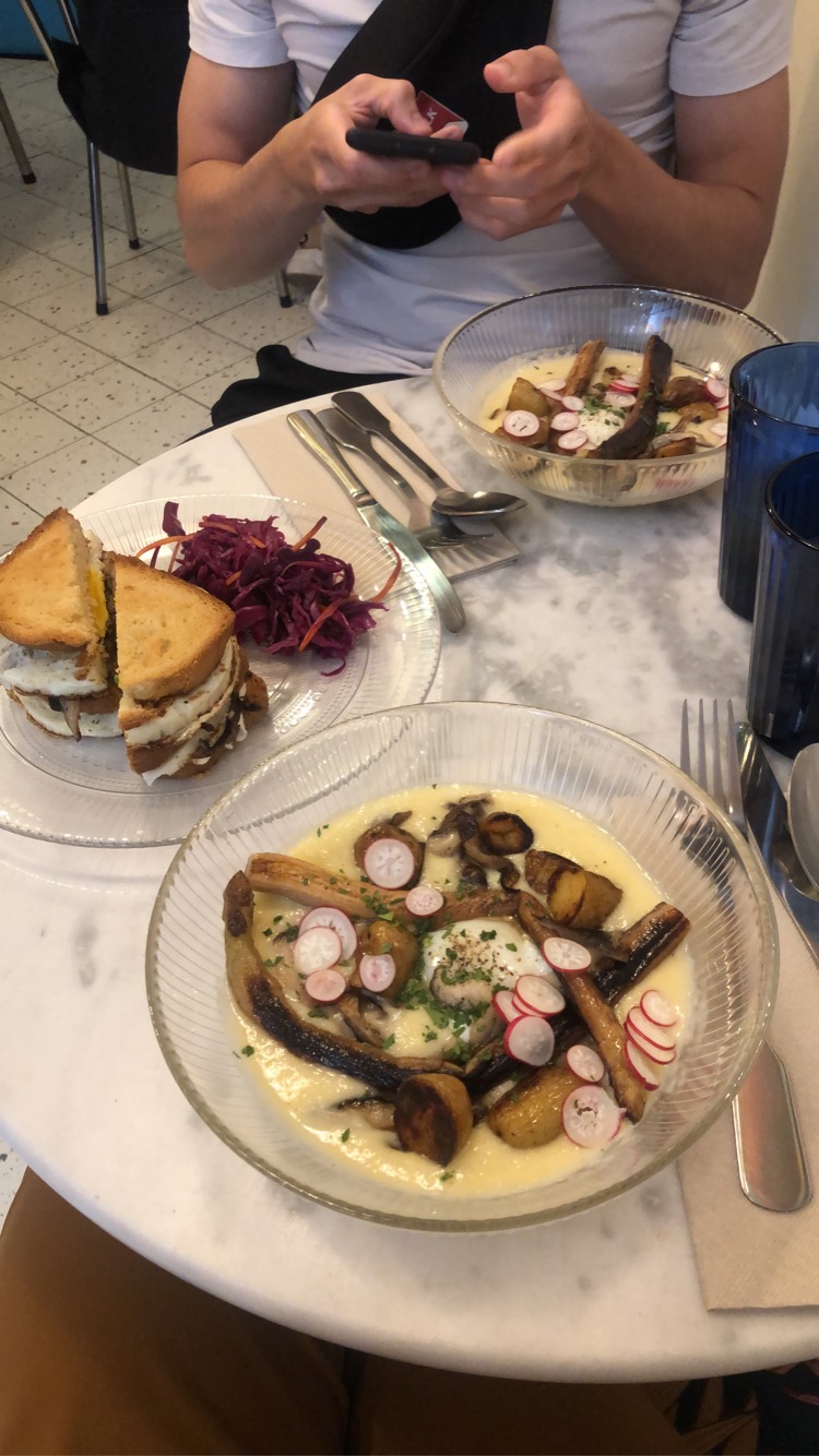 Brunch hyper bon, frais, fait maison, service rapide alors que c'était complet, super déco 70s moderne. Un poil cher mais ça vaut le coup ! 👌🏻 Mention spéciale pour le thé glacé.