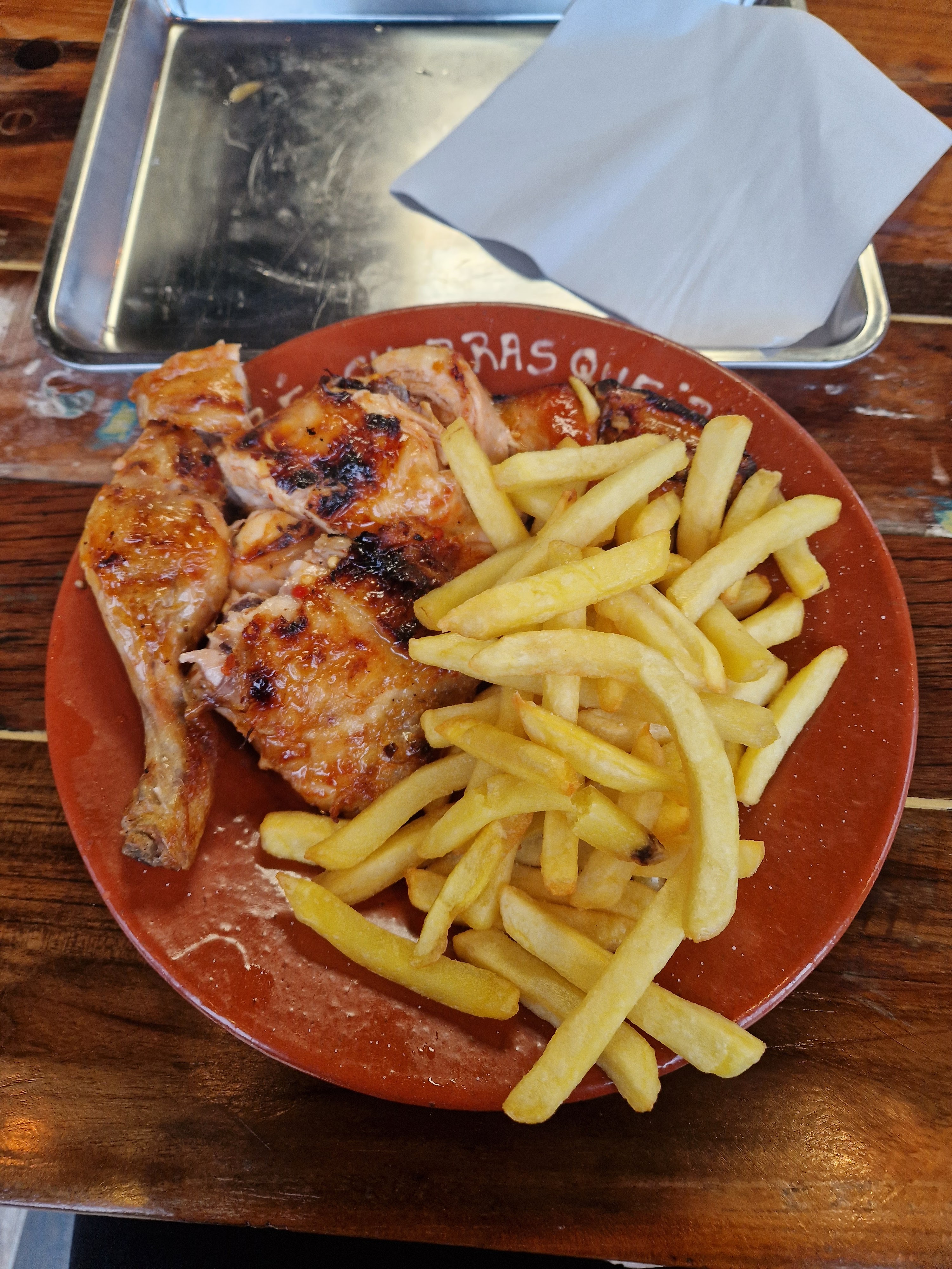 Poulet assez bon mais on m'a vendu du riz chorizo périmé , sale odeur de rance et goût de riz périmé. Je n'y retournerai pas. Dommage la dame, portugaise, était sympathique