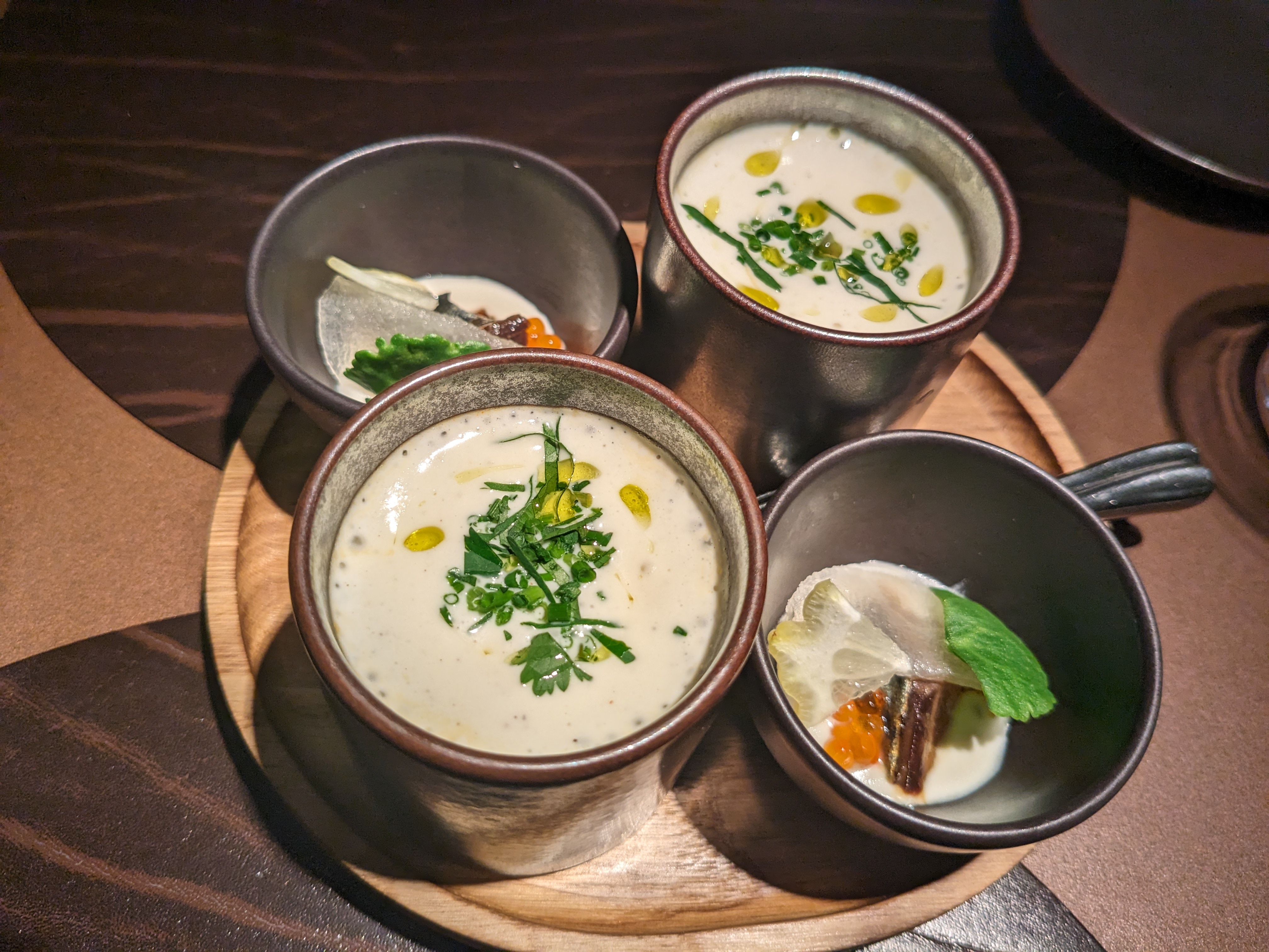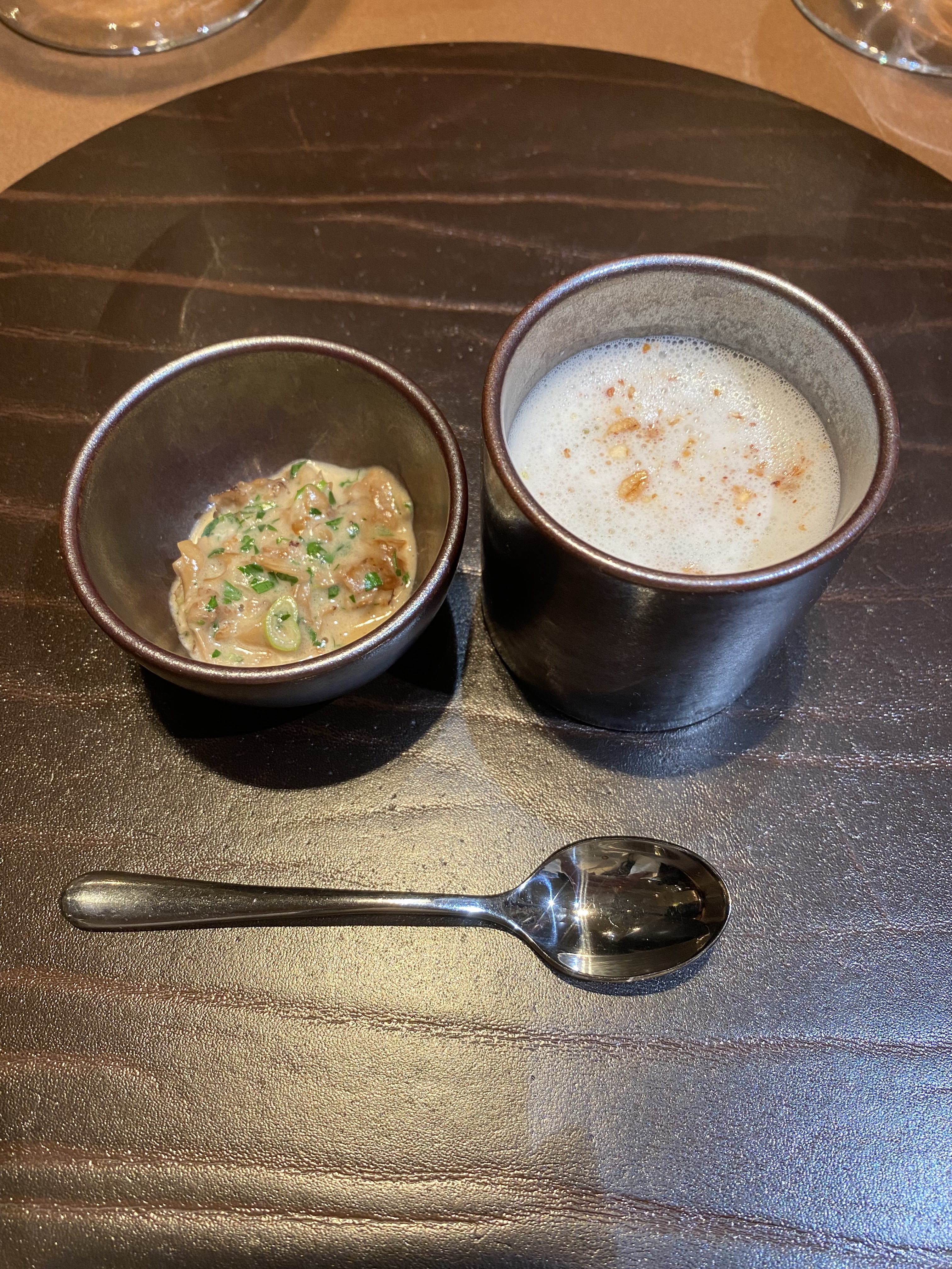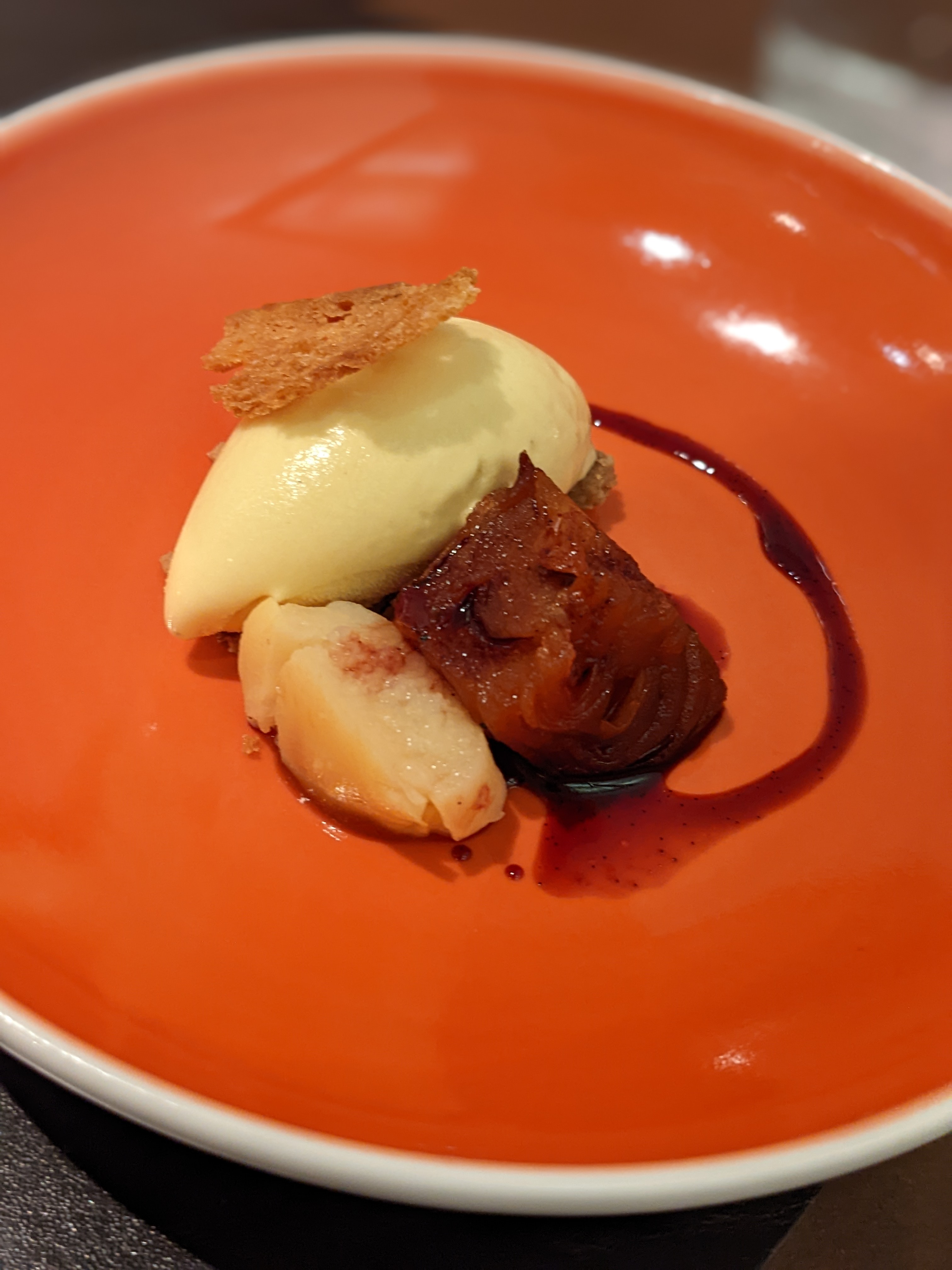 Nous venons ici depuis des années et c’est à chaque fois une expérience formidable. J'adore la fusion des saveurs japonaises et de la cuisine française. Il s’agit d’un menu dégustation vous permettant de sélectionner 5 ou 7 plats. Nous étions ravis de voir cette fois qu'ils avaient des vins du Domaine de la Folie, qui est l'un de nos vignerons préférés en Bourgogne. Nous effectuons toujours une réservation et vous pouvez généralement en obtenir une une semaine à l'avance.