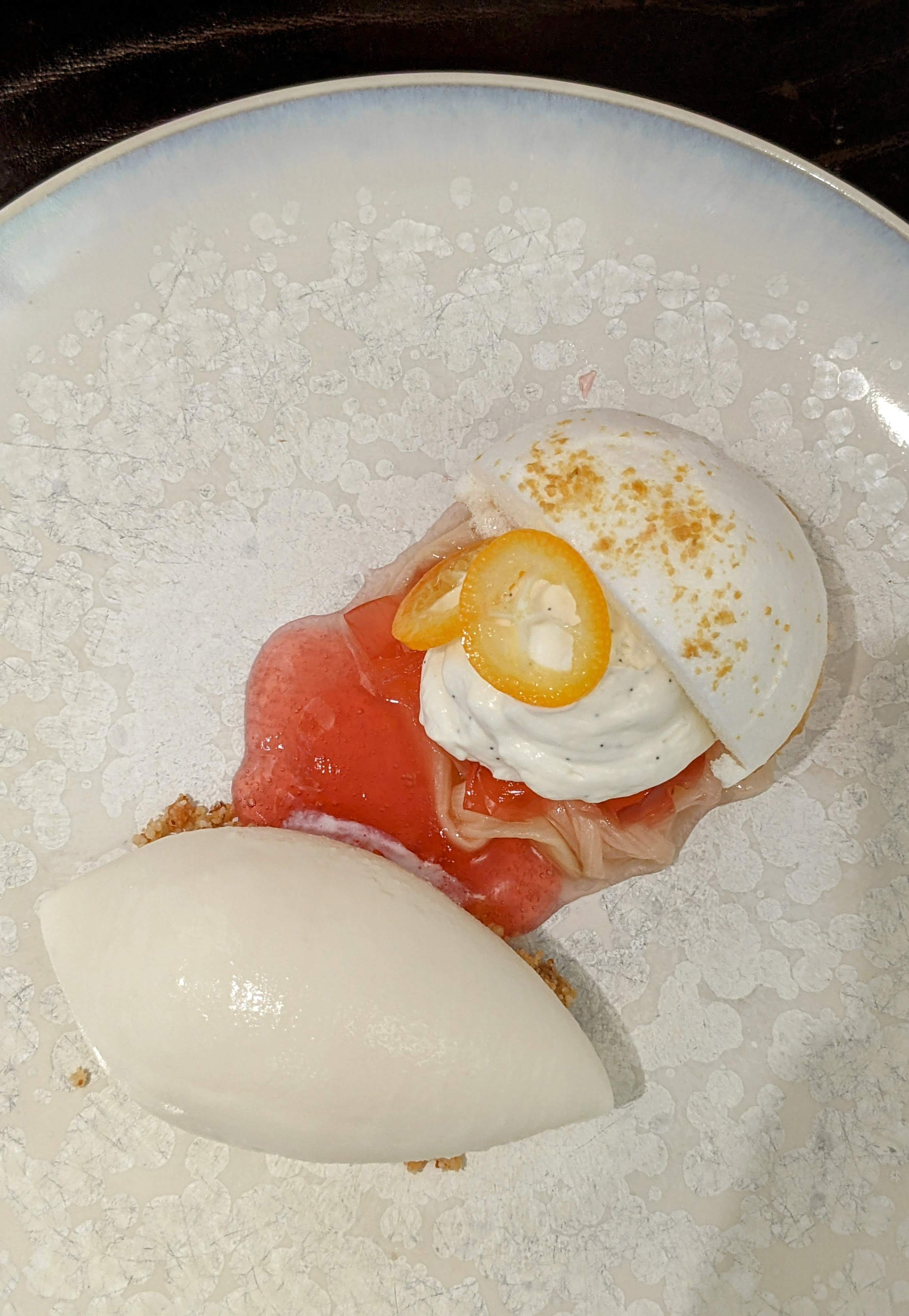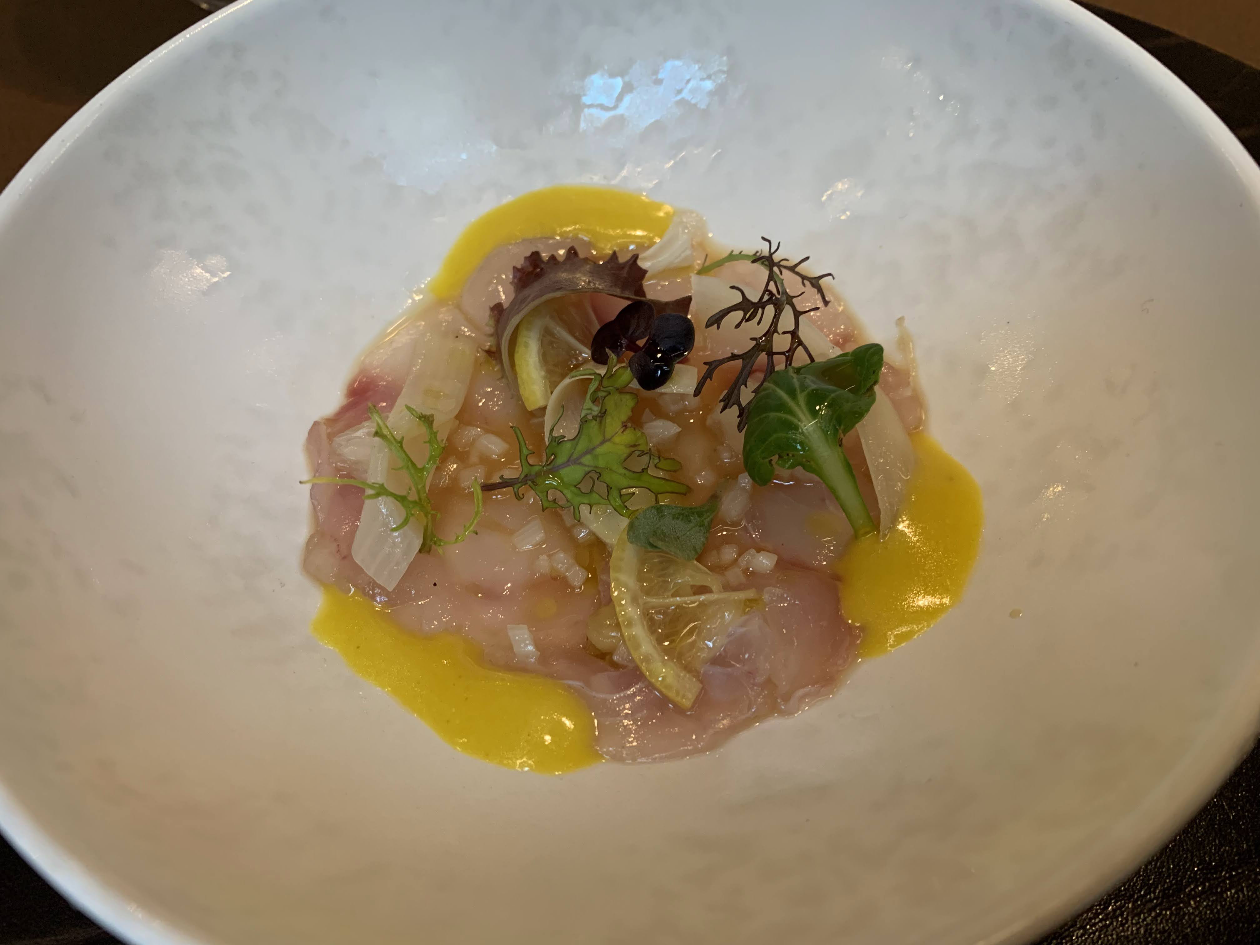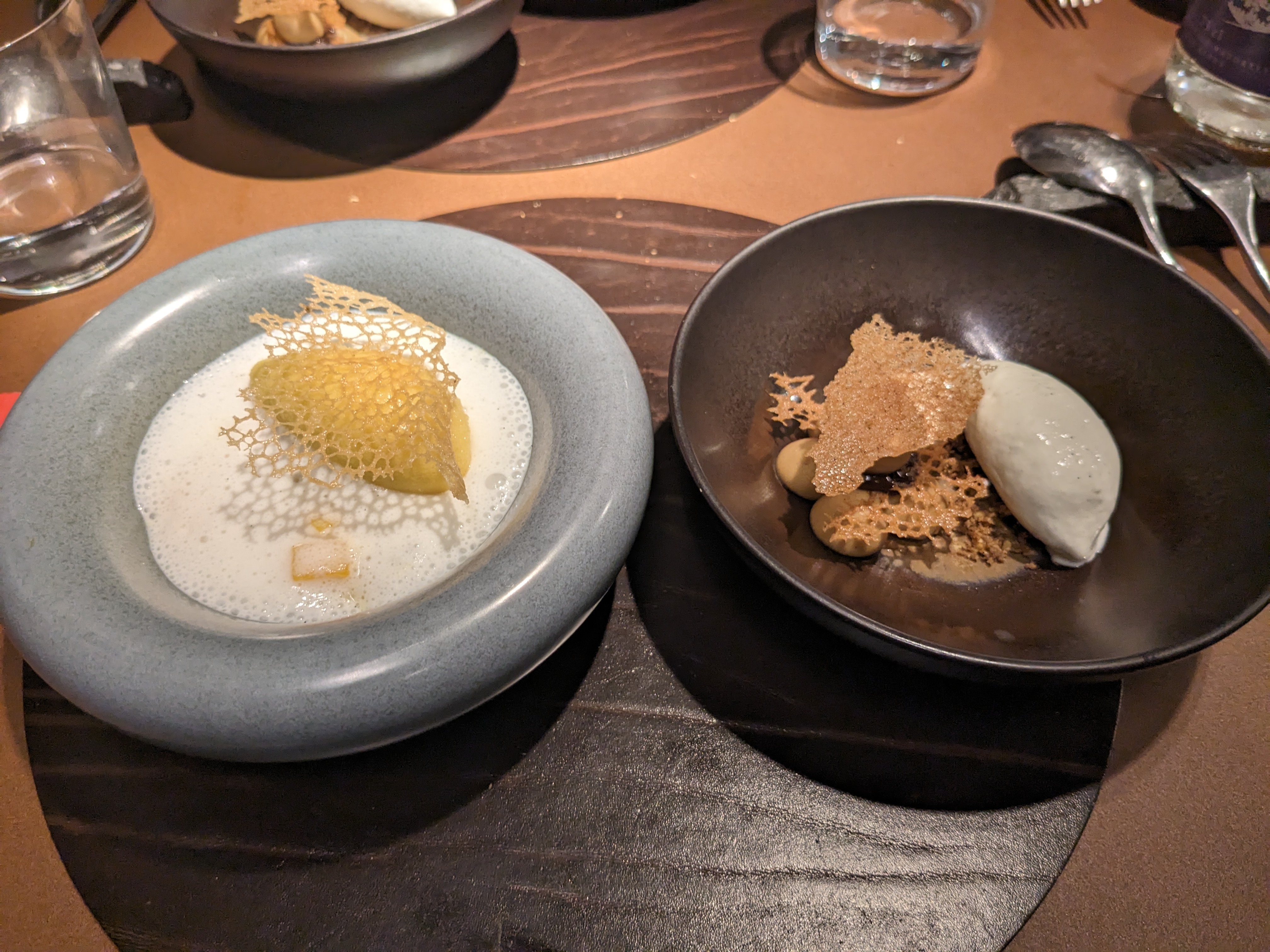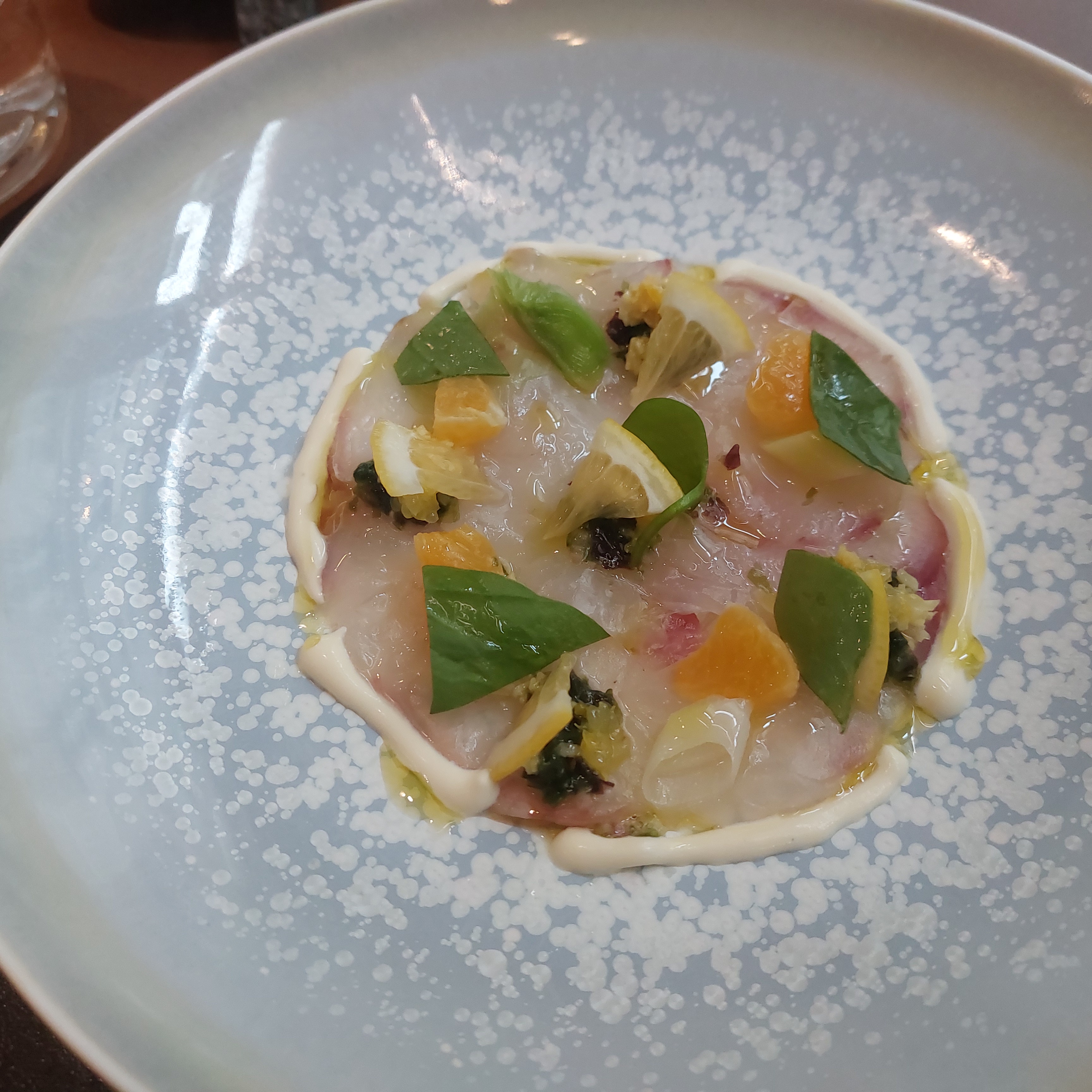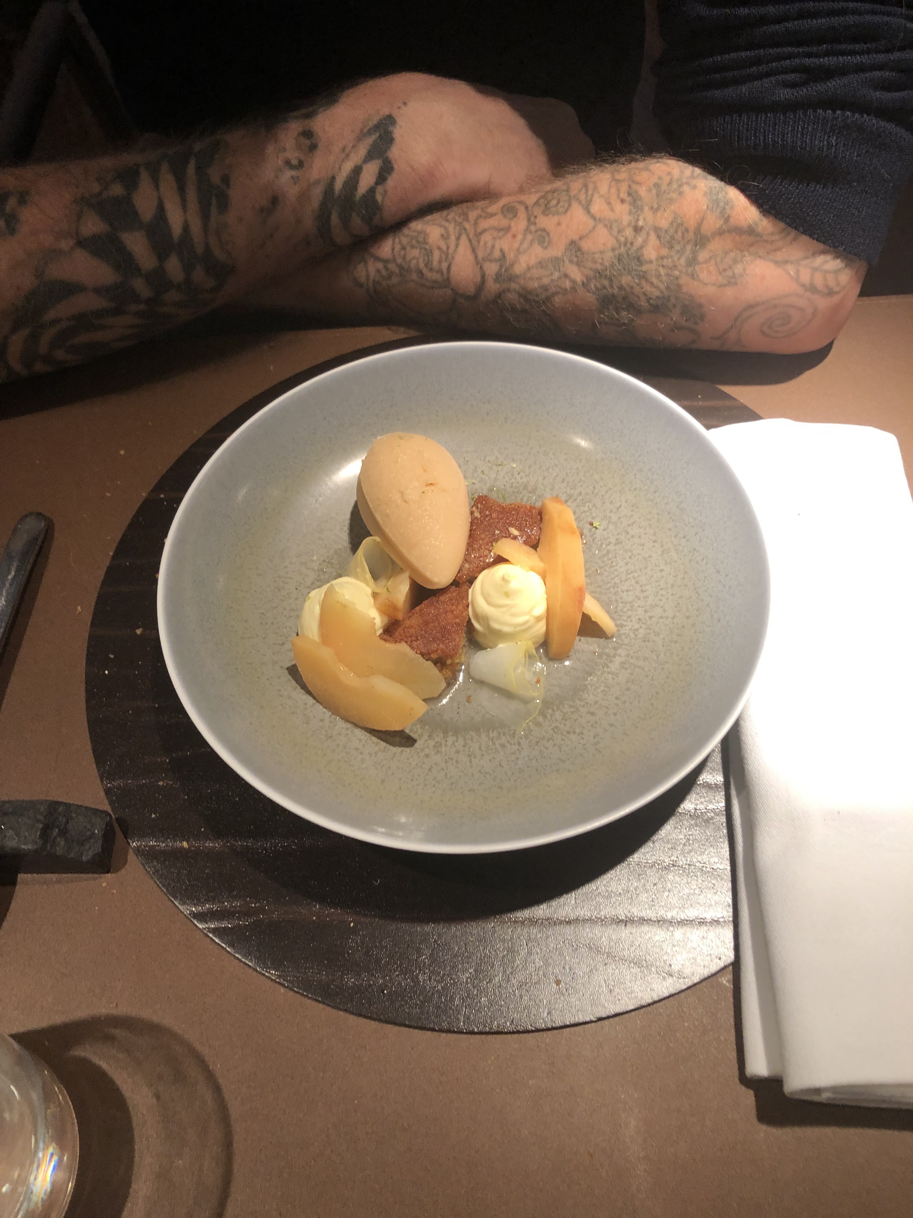 Nous avons eu le menu dégustation de cinq plats, adapté pour nous car j'ai mentionné une allergie aux crustacés. J'ai aimé tous les plats mais surtout le bar mariné, le canard et le dessert au chocolat blanc et glace au wasabi. Le préféré de mon mari était l'autre dessert ! J'ai trouvé le site Web déroutant car il n'était pas clair que vous deviez prendre un menu dégustation et nous n'aurions probablement pas réservé si nous l'avions réalisé, mais cela dit, nous avons apprécié l'expérience.