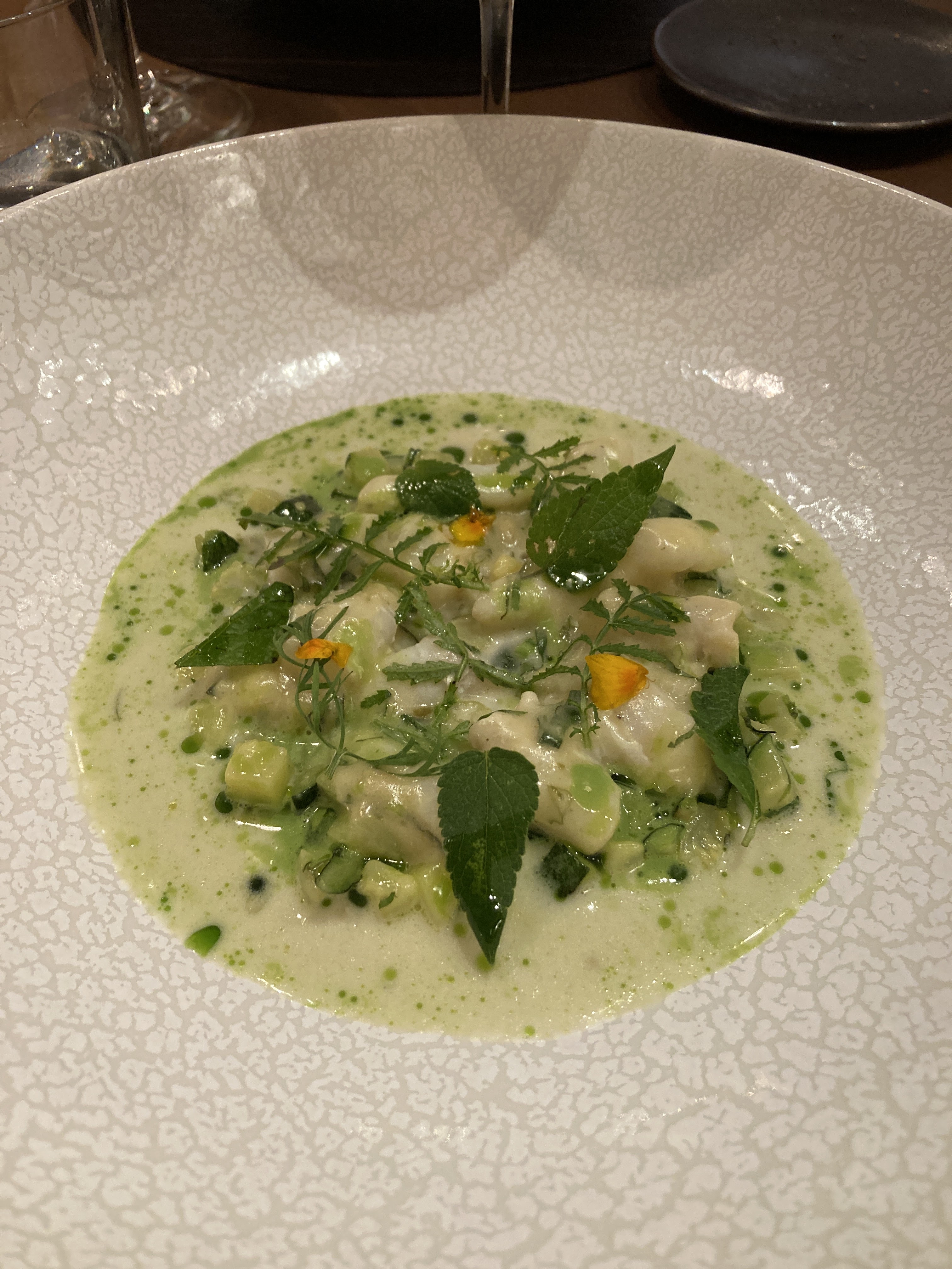 Cela ne répondait pas à mes normes pour un restaurant étoilé Michelin. J'ai pris le repas de 5 plats au déjeuner. Tout d'abord, les portions étaient trop petites pour le prix. En considérant uniquement la quantité, vous obtenez un meilleur prix avec le repas plus simple à 3 plats, où il y a moins de variété, mais les plats étaient plus généreux. Concernant le goût, cela n'avait rien d'exceptionnel par rapport à mon expérience. Entre les plats, le goût était trop similaire avec un goût poivré-citronné persistant. En un mot, il y avait un manque de complexité. La cerise sur le gâteau était le dessert. Deux bols séparés, tous deux à base de glace, mais l'un d'eux était presque fondu une minute après son arrivée. De plus, le service n'était pas satisfaisant. Trop lent et maladroit. Malheureusement, c'était bien en deçà des attentes, surtout compte tenu des critiques que l'on peut trouver en ligne, mais personnellement, je ne le suggérerais pas.