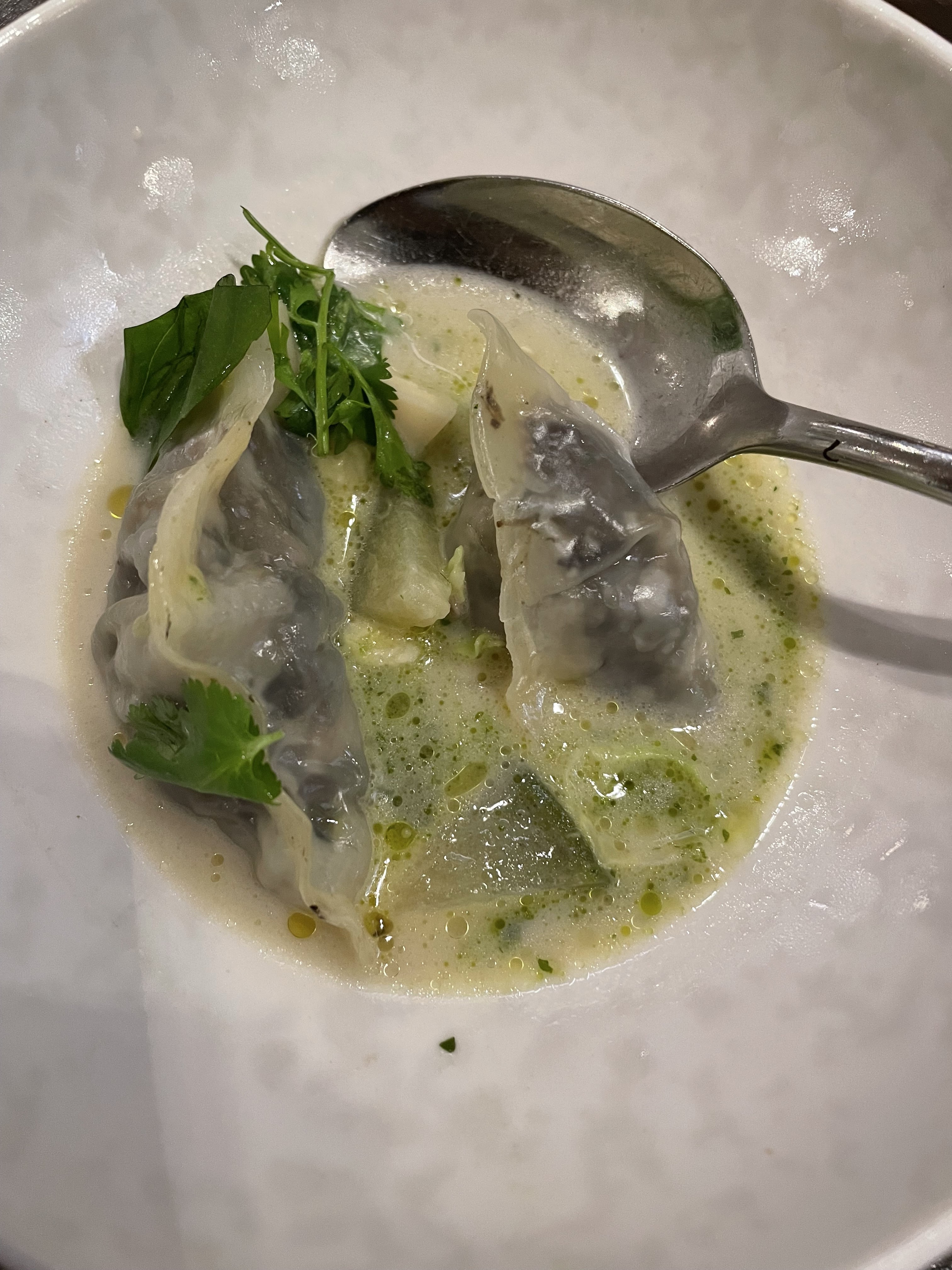 La nourriture était bien équilibrée et savoureuse. Le plat qui s'est démarqué pour moi était les raviolis et plus particulièrement le bouillon et l'équilibre global du plat. Les saveurs se mariaient bien et c'était de loin le meilleur plat de la journée pour moi. Les autres plats étaient bons, rien de trop exagéré et rien de trop dur pour être quelque chose qu'ils ne sont pas ! Le personnel était super et je leur ai demandé d'associer les vins à chacun des plats, ce qu'ils ont bien fait. Expérience des plus agréables et que je recommanderai vivement.