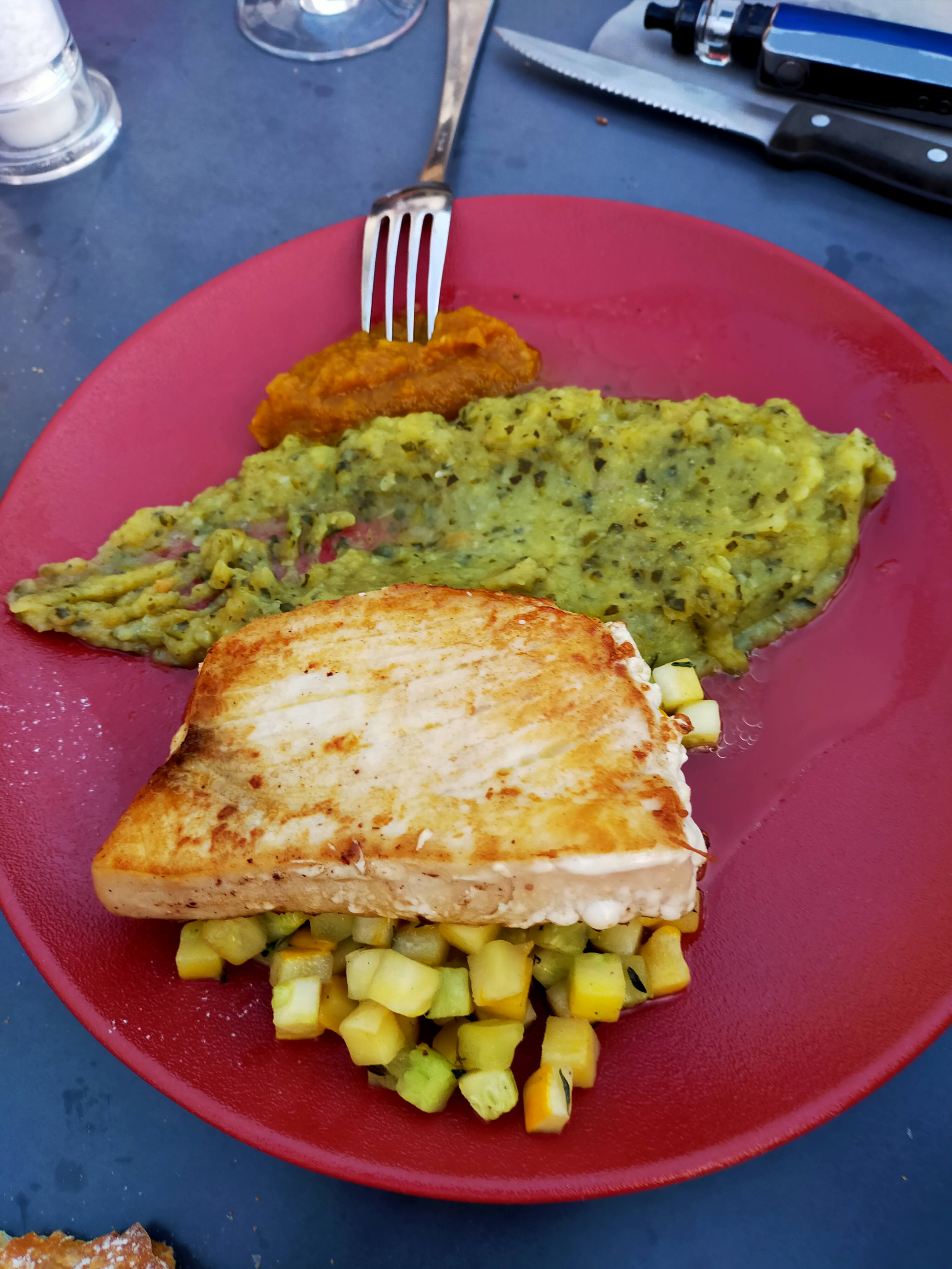 Plats à la carte un peu cher. Pavé de thon remplacé par steak de thon trop fin et trop cuit. Verre et assiette ébréchés Un nappe même en papier serait bienvenue