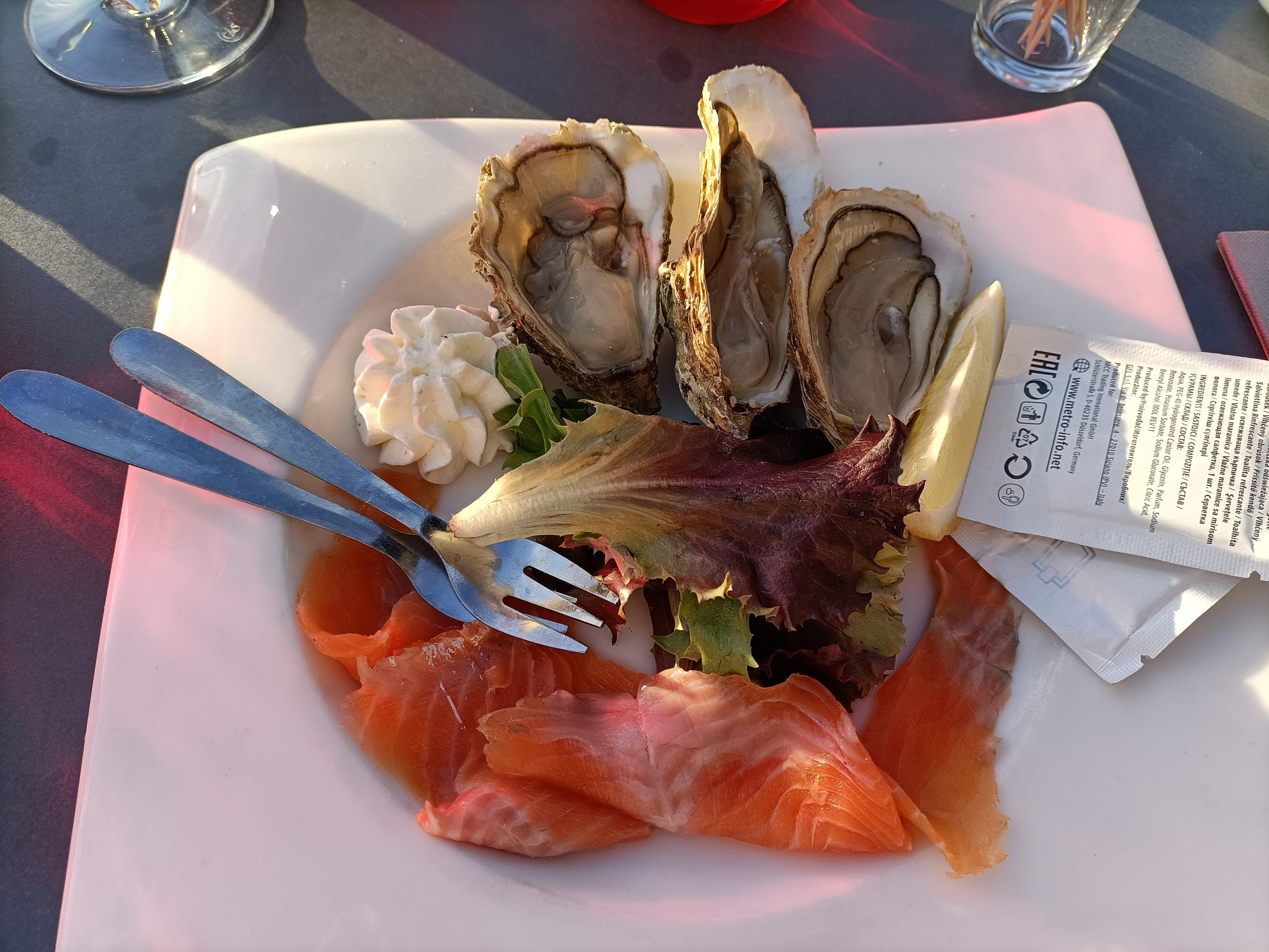 Placé face à la base sous-marine, l'endroit et la vue sont simpa, enfin c'est une autre facette des bord d'eau. Nous avons trouvé le service correcte et les plats plutôt bon mais plus. même si le patron rabâche que son tartare est extraordinaire. Alors oui c'est bon, mais pas au point de décrocher la soucoupe volante qui se trouve sur une structure métallique et de s'envoyer en l'air. Les mini concerts sont un plus.