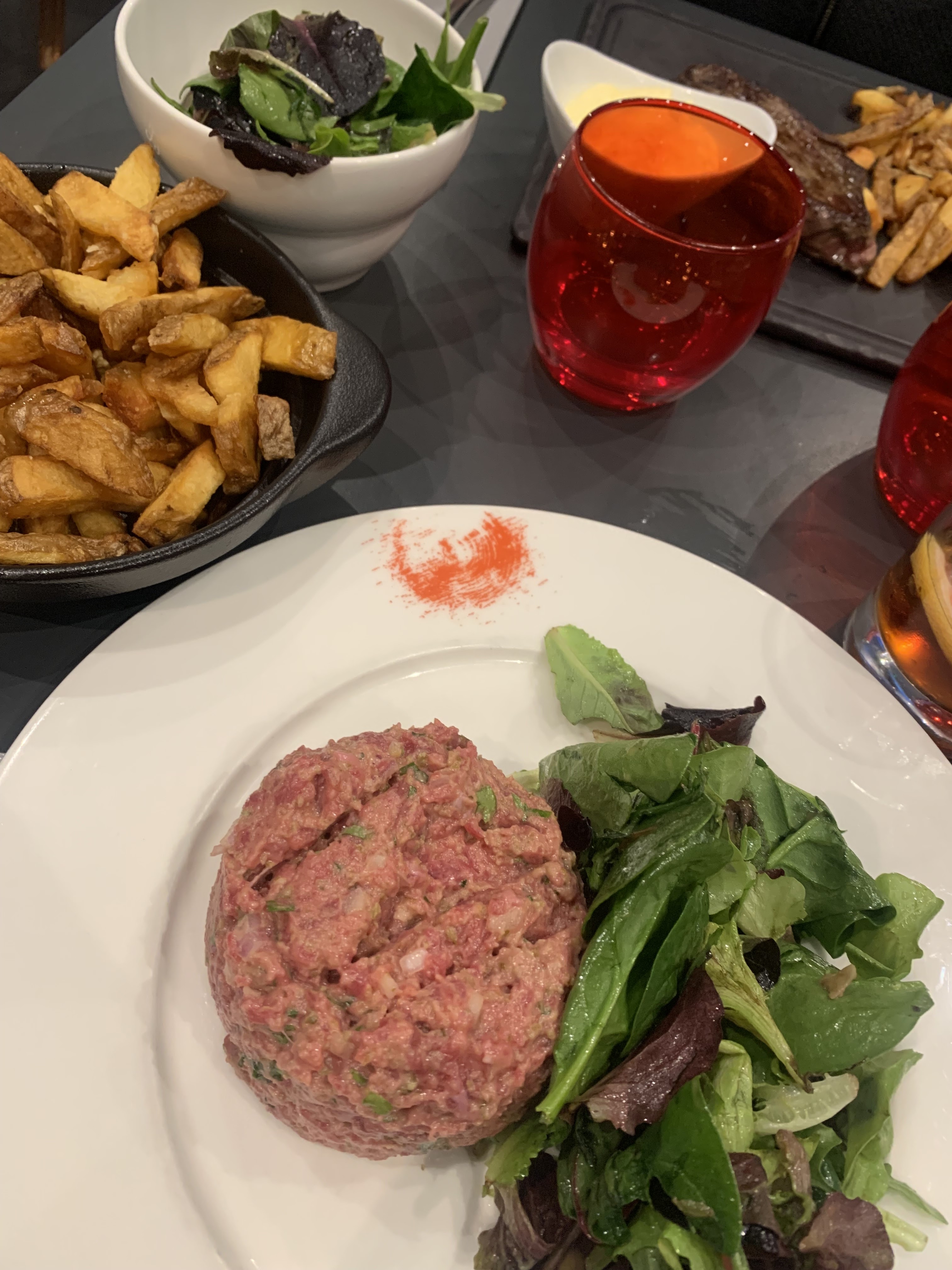 Restaurant réservé un midi. Un mojito au champagne a dix euros j'en ai encore les larmes aux yeux car j'ai cherché le champagne... Pourquoi n'y a t il pas des cocktails sans alcool mais avec de vrais fruits , ce serait tellement plus classe pour un resto comme cela. Crème brûlée au boudin, bonne mais déçu par la présentation. Pièce du boucher très dur et émulsion de béarnaise sans aucun goût. En dessert, un pain perdu baigné dans le rhum et un mont blanc aussi a l'alcool ... Du coup niveau dessert, mieux vaut aimé l'alcool. Très déçu au vu des commentaires.