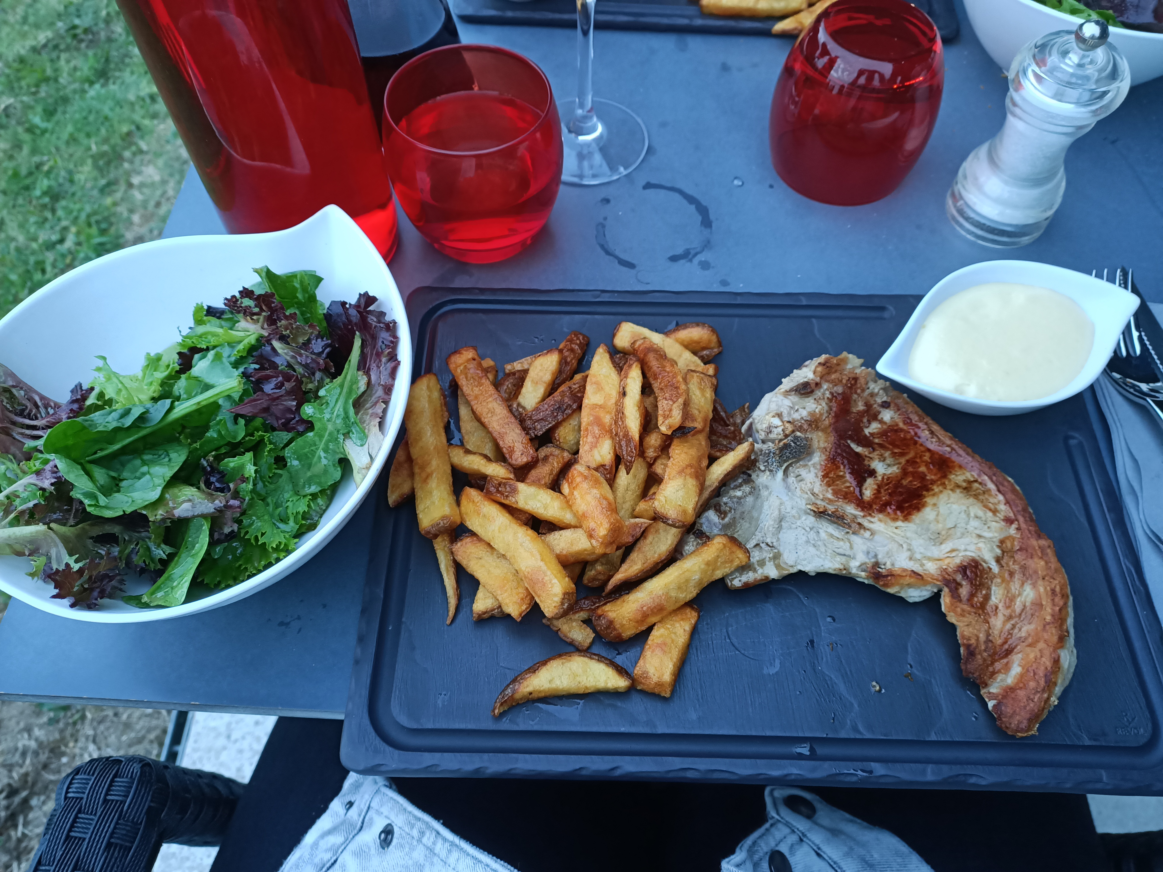 Des frites dites maison cuites avec la peau alors que les vraies frites sont pelees et que ce sont les potatoes qui gardent leur peau...., découpées n'importe comment et servies fond du panier avec des petits morceaux grillés trop durs à manger..... une sauce blanche servie avec la viande sans goût et sans pouvoir dire ce que c'est et un dessert servi avec du chocolat liquide coupé à l'eau !!@ aberrant !!! Des plats qui ne correspondent absolument pas à ce qui est écrit sur la carte. Je déconseille et recommande plutôt l'entre 2 verres à Quinsac qui pour des prix similaires est un EXCELLENT restaurant