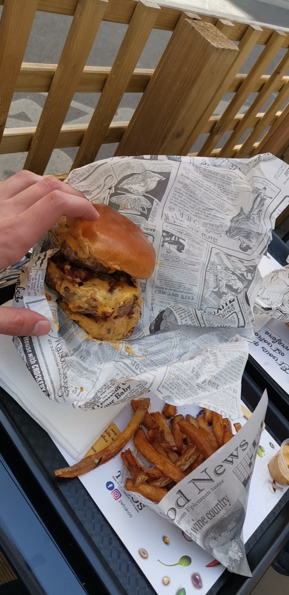 Nous sommes venus à deux hier par une envie de Burger et on s'est RÉGALÉ ! Du coup on a décidé de remettre ça aujourd'hui, pour ma part pour tester les tacos, et je n'ai pas été déçue le tacos était super bons et bien garni j'ai adoré (j'écris ça depuis la terrasse de l'établissement) On s'est rempli le bide c'était mega bon. La dame de l'accueil est super gentille et nous a ajouté une boisson et des frites pour l'attente car il y avait un petit peu monde. Je recommande carrément 👍