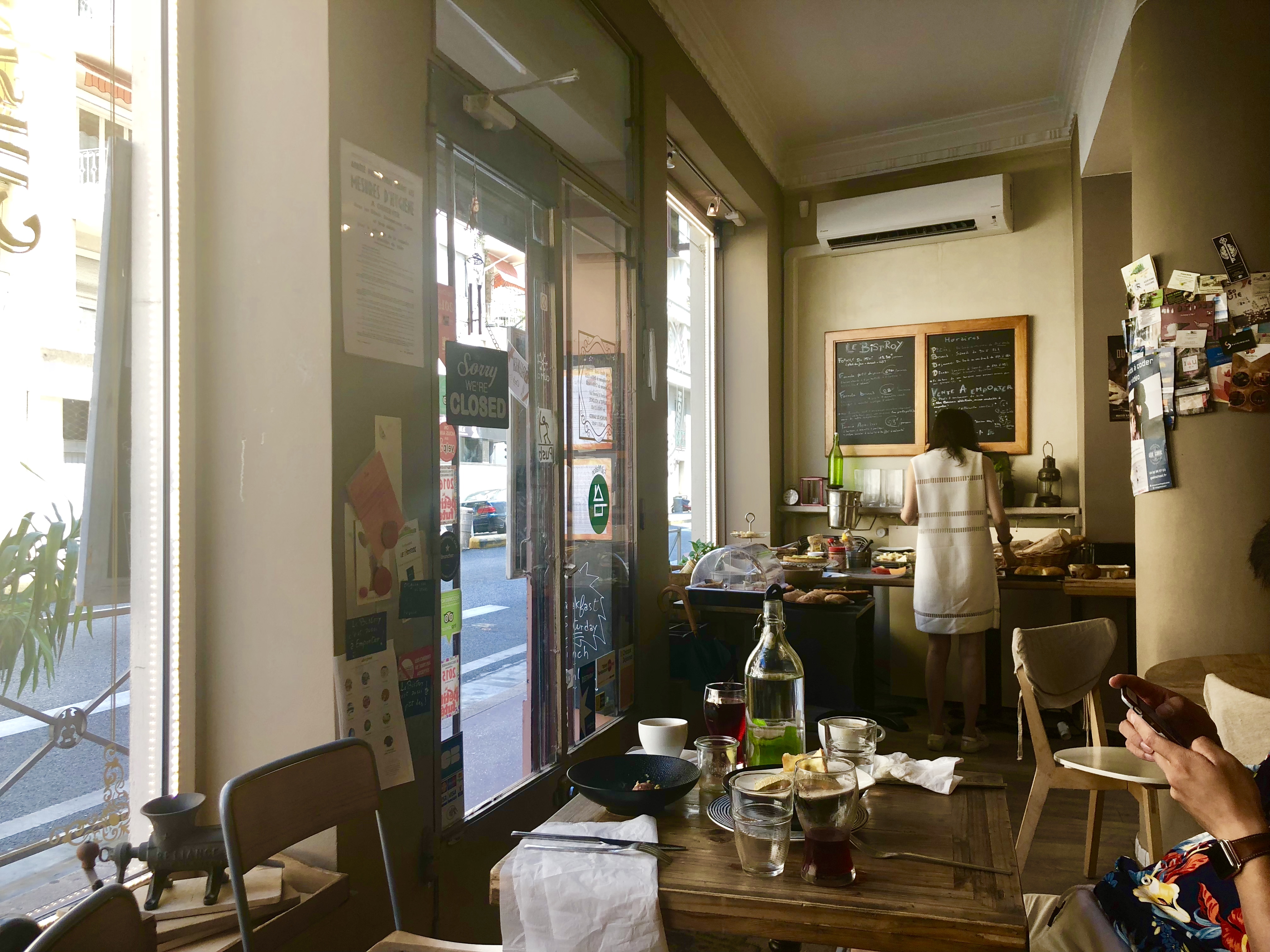 Un joli café local pour le petit-déjeuner et le déjeuner. Ils disposent d'un espace confortable et bien décoré avec du pain, des confitures, des œufs, du pain perdu et d'autres plats favoris du petit-déjeuner. Le toast à deux faces propose des options de Nutella, caramel, confiture d'arpocot, confiture de fraise, miel local ou beurre. Même la salle de bain est mignonne et thématique, avec un tableau pour les enfants, un interrupteur annon/off qui vous permet de choisir jour/nuit (jour/nuit en anglais). La foule semblait compter plus de touristes/expatriés que de nombreux autres restaurants ouverts à cette époque.