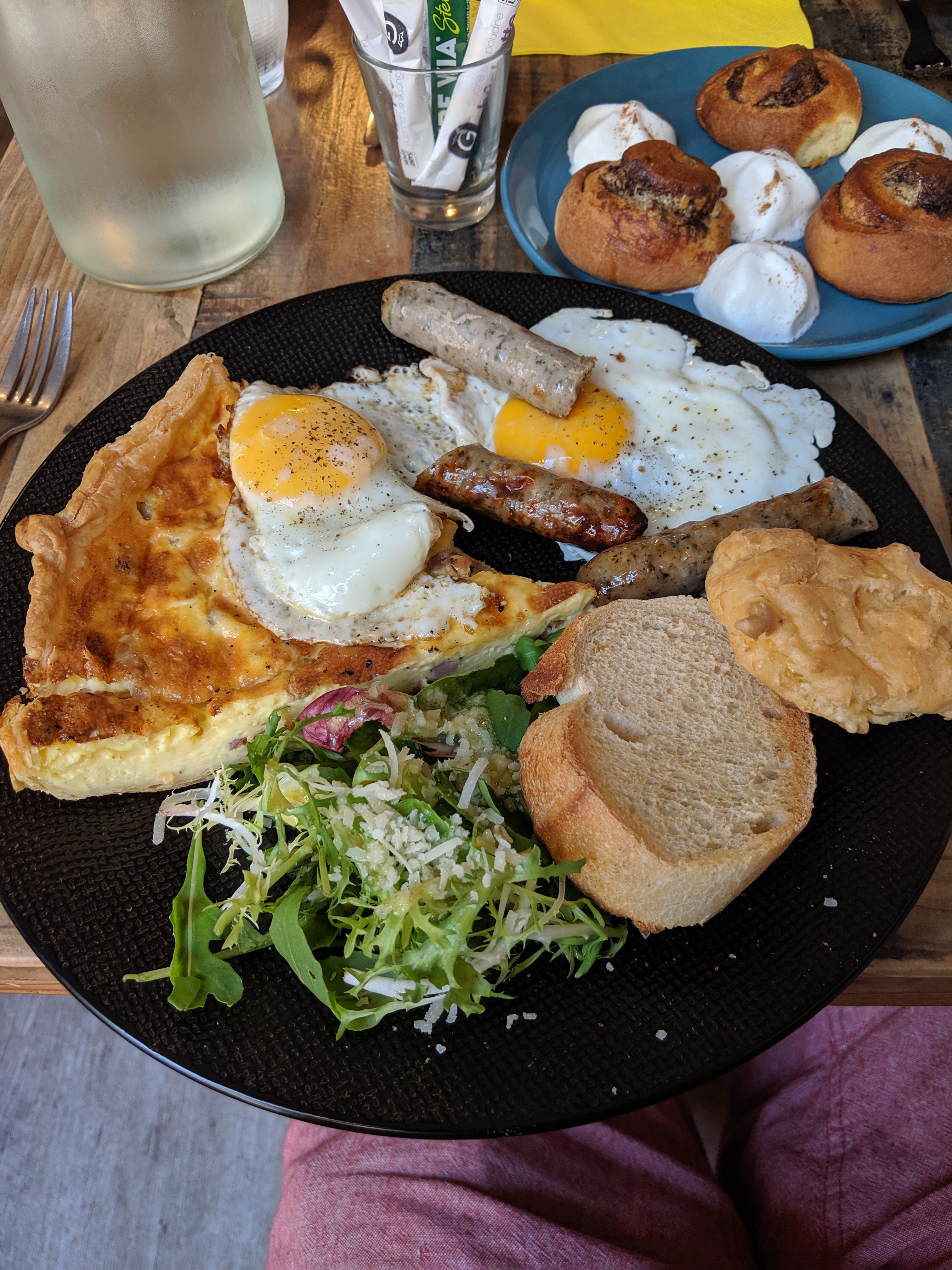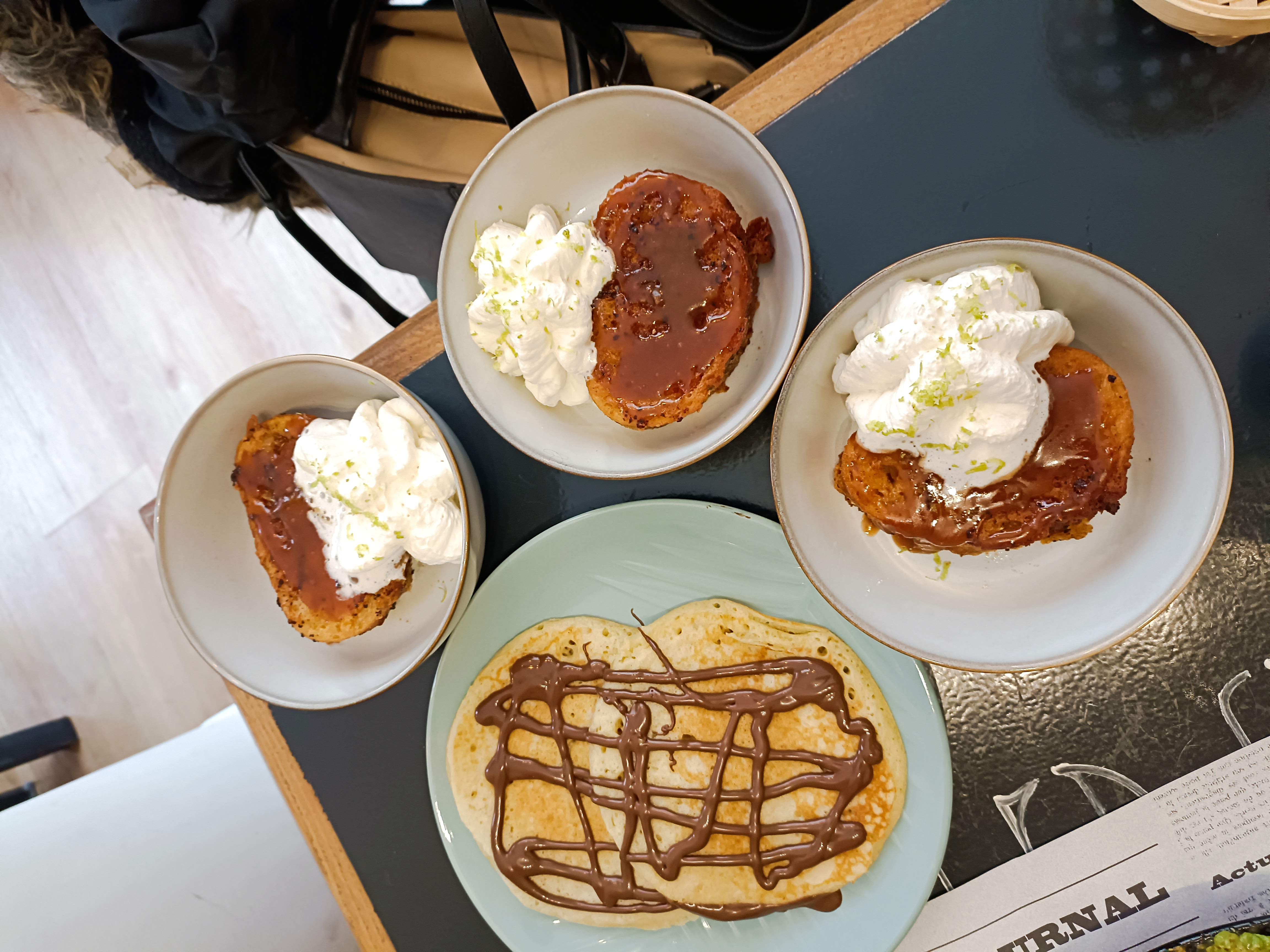 Fabuleux! Nous avons beaucoup mangé et tout était bon ! Nourriture délicieuse avec une touche chaleureuse. Tout ce à quoi vous pouvez penser pour le brunch, foncez ! Oeufs brouillés à l'avocat, saumon ; pain aux bananes (trop bon), crêpes au sirop d'érable, cannelle etc. Simplement, ils aiment cuisiner et faire plaisir à leurs clients. Service très gentil et attentionné et tout cela pour un prix raisonnable. Bravo! 👏🏻 Désolé, la photo a été prise après avoir tout fini parce que c'était tellement bon !