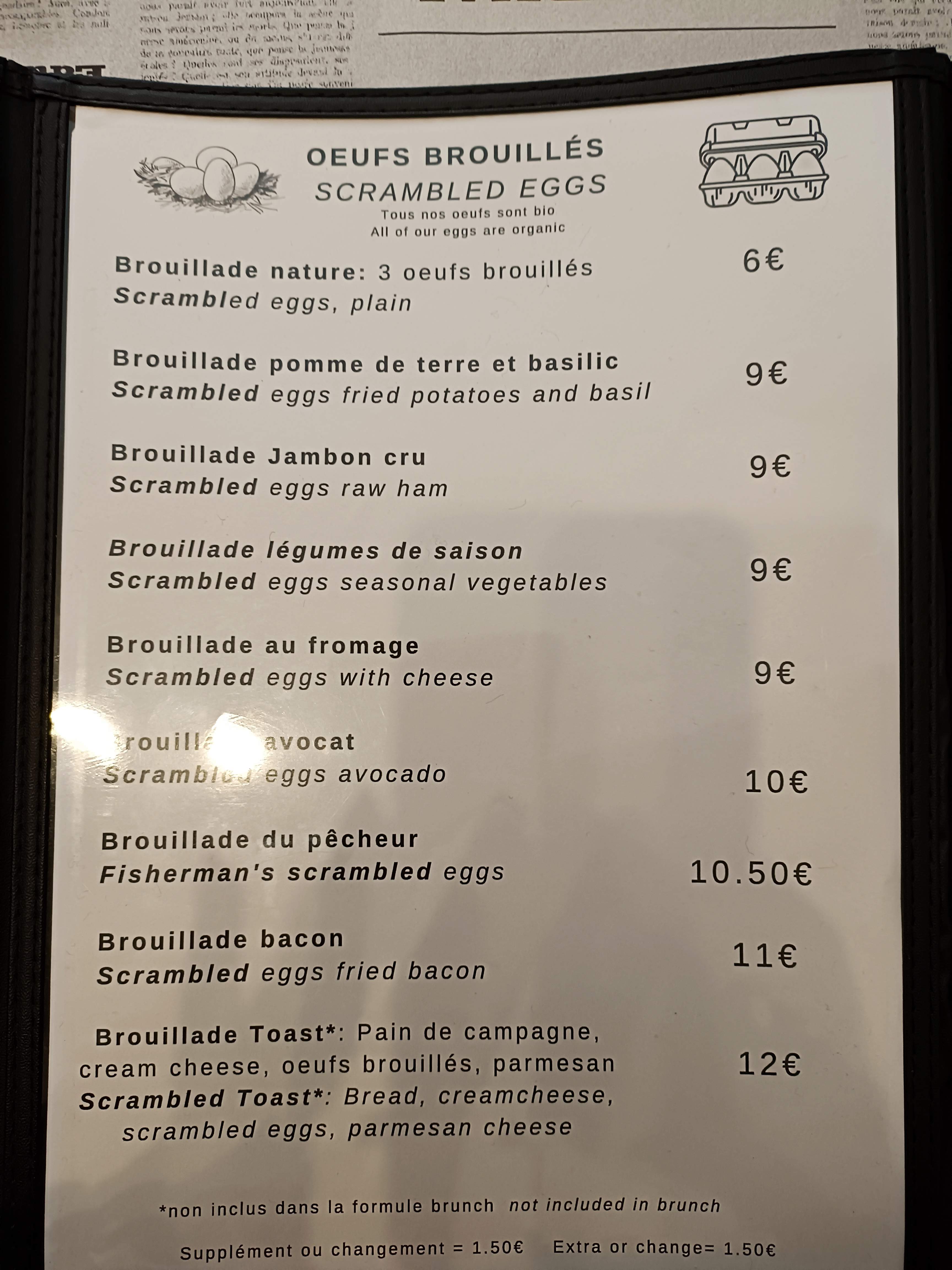 Le meilleur brunch de Nice ! Une VRAIE brouillade maison (contrairement à la daube industrielle servie dans beaucoup de soit disant « brunchs niçois ») Des tarifs tout à fait corrects pour la qualité des prestations. Les 2 jeunes sont adorables et souriants. Un plaisir d’y venir déjeuner chaque lundi