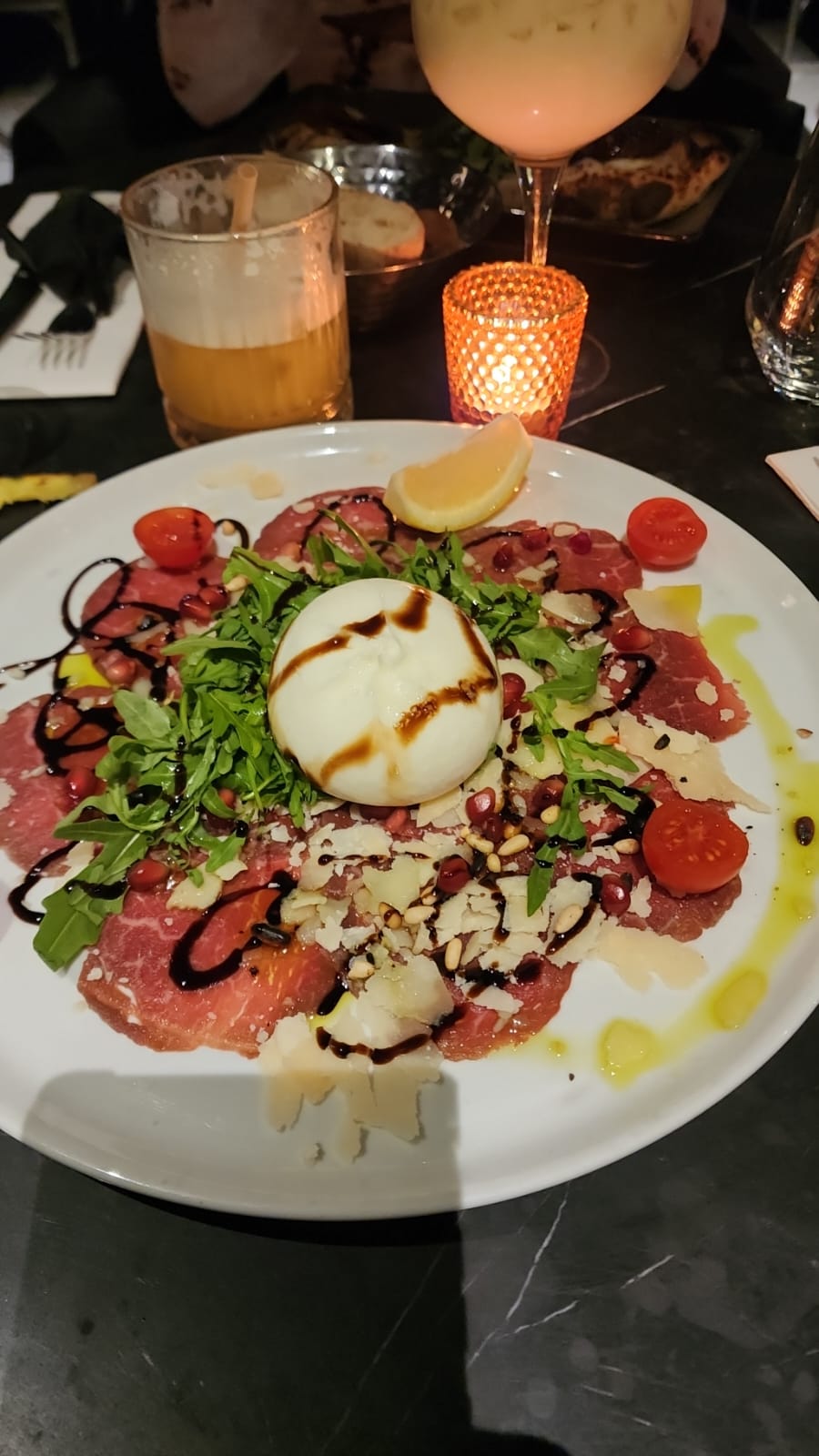 Lieu très beau ! Vraiment très bien décorer une bonne ambiance. Très bien pour un dîner en amoureux ou entres amis. Le service au top je n’ai pas eu à attendre longtemps pourtant nous sommes venu un samedi soir. Le seul petit bémol ce sera les portions de viande dans les pâtes etc .. sinon super bon du cocktail au dessert même le pain était moelleux un délice ! Je recommande a 100%