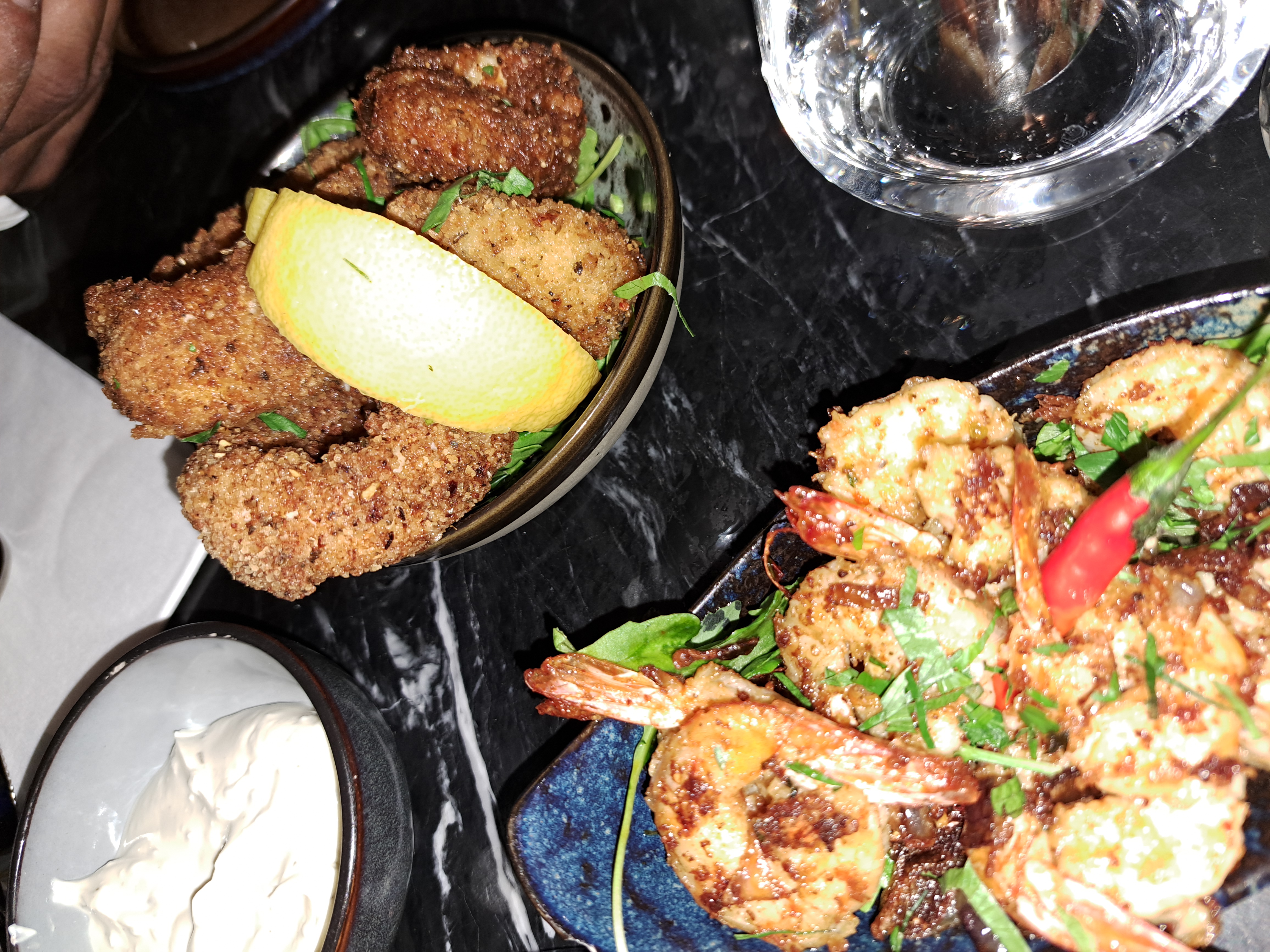 Le cadre est joli l’endroit est bien fréquenté, l’ambiance pourrait être mieux et les plats sont pas terrible. Manque d’assaisonnement, purée dure, les crevettes juste piquantes sans sauce pour les accompagner. Les cocktails sont super bons. Pour ce qui est du service on a attendu 1h30 (sans exagération) après commande pour avoir nos boissons et dans la foulée nos entrées. Le serveur s’est excusé en prétextant un problème en cuisine. On nous a également refusé une carafe d’eau en nous indiquant qu’il fallait payer une bouteille d’eau. Le show des danseuses et du cracheur de feu relève un peu la soirée.