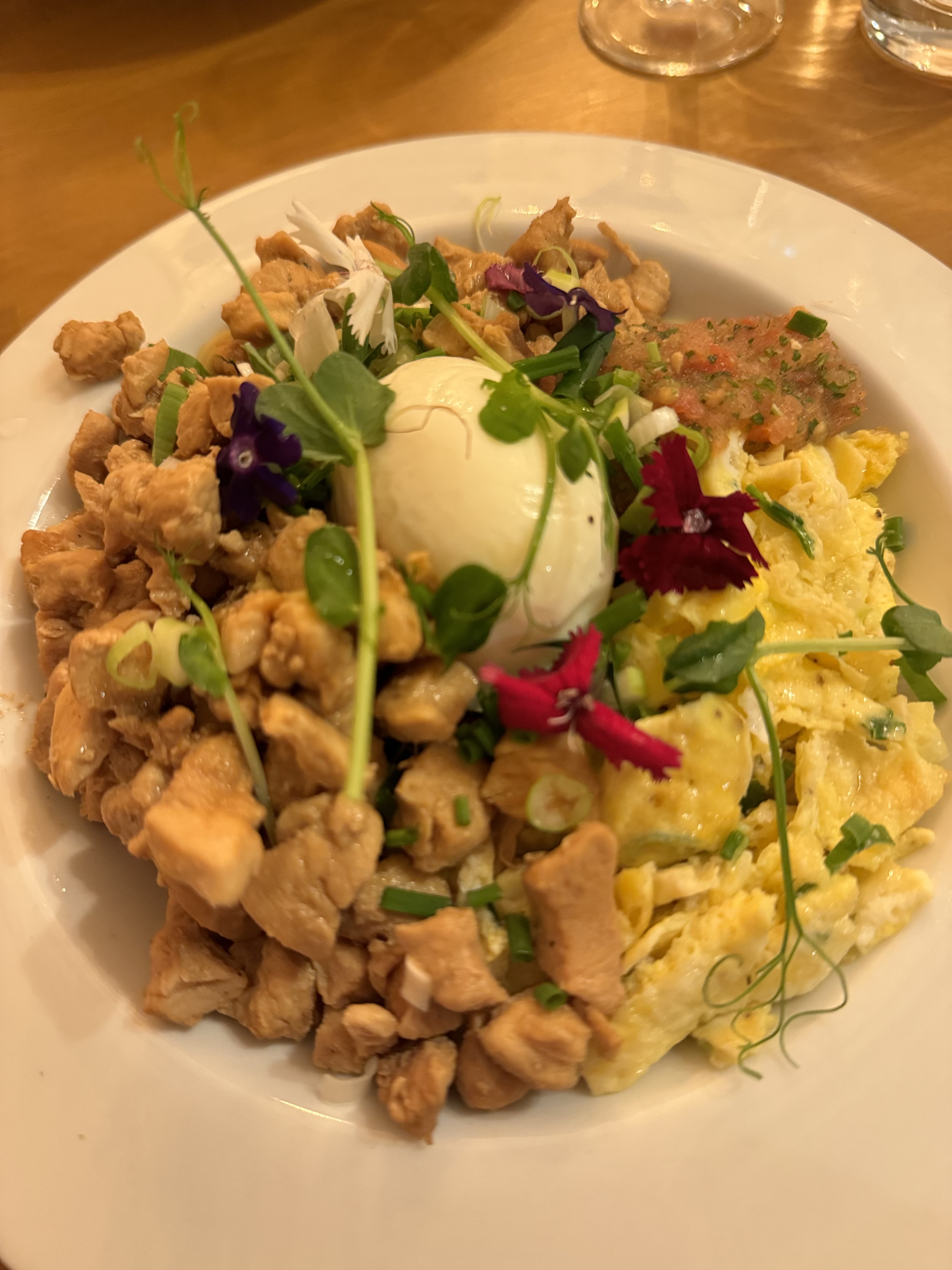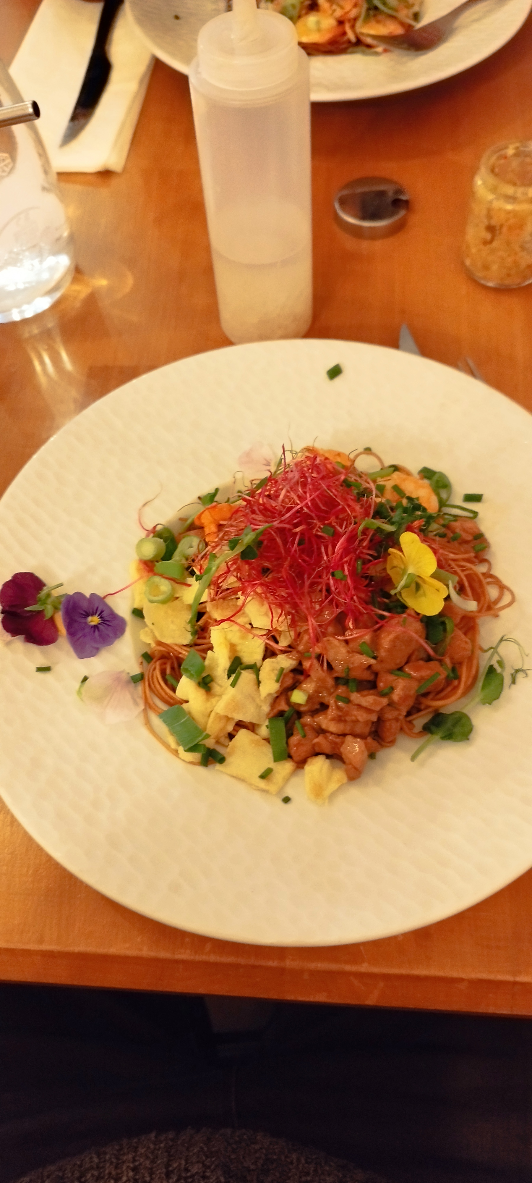 Petit restaurant agréable. La carte change régulièrement. Le plat avec petits morceaux de canard un peu ferme et sec. De belles assiettes avec fleurs comestibles petites pousses qui donnent du Peps aux plats! A découvrir!
