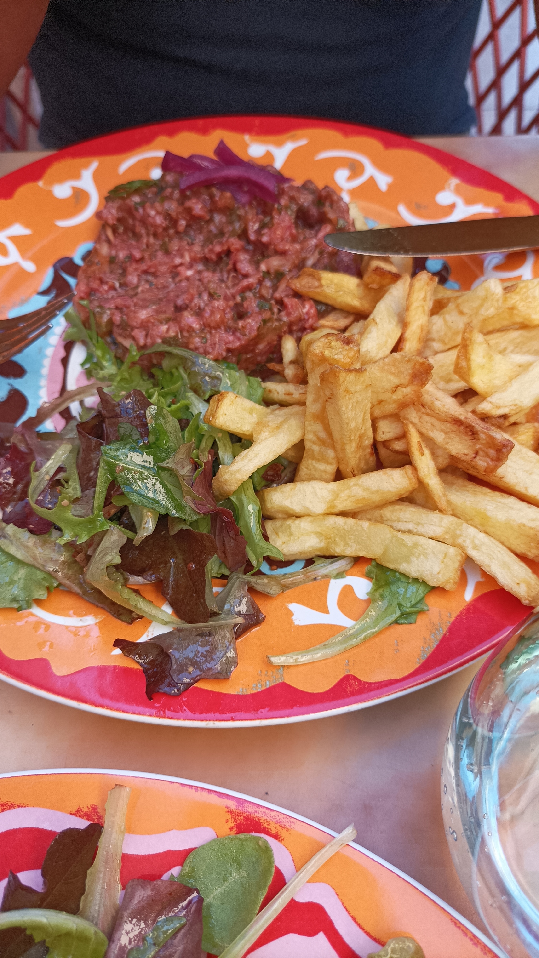 Évidement, on est à Saint Tropez, donc les prix sont élevés. Mais pour un tartare très bien préparé, frites et mousse au chocolat faites maison à 23€, c’est très bien. En revanche, les boissons sont hors de prix. Enfin, l’accueil est très sympa !