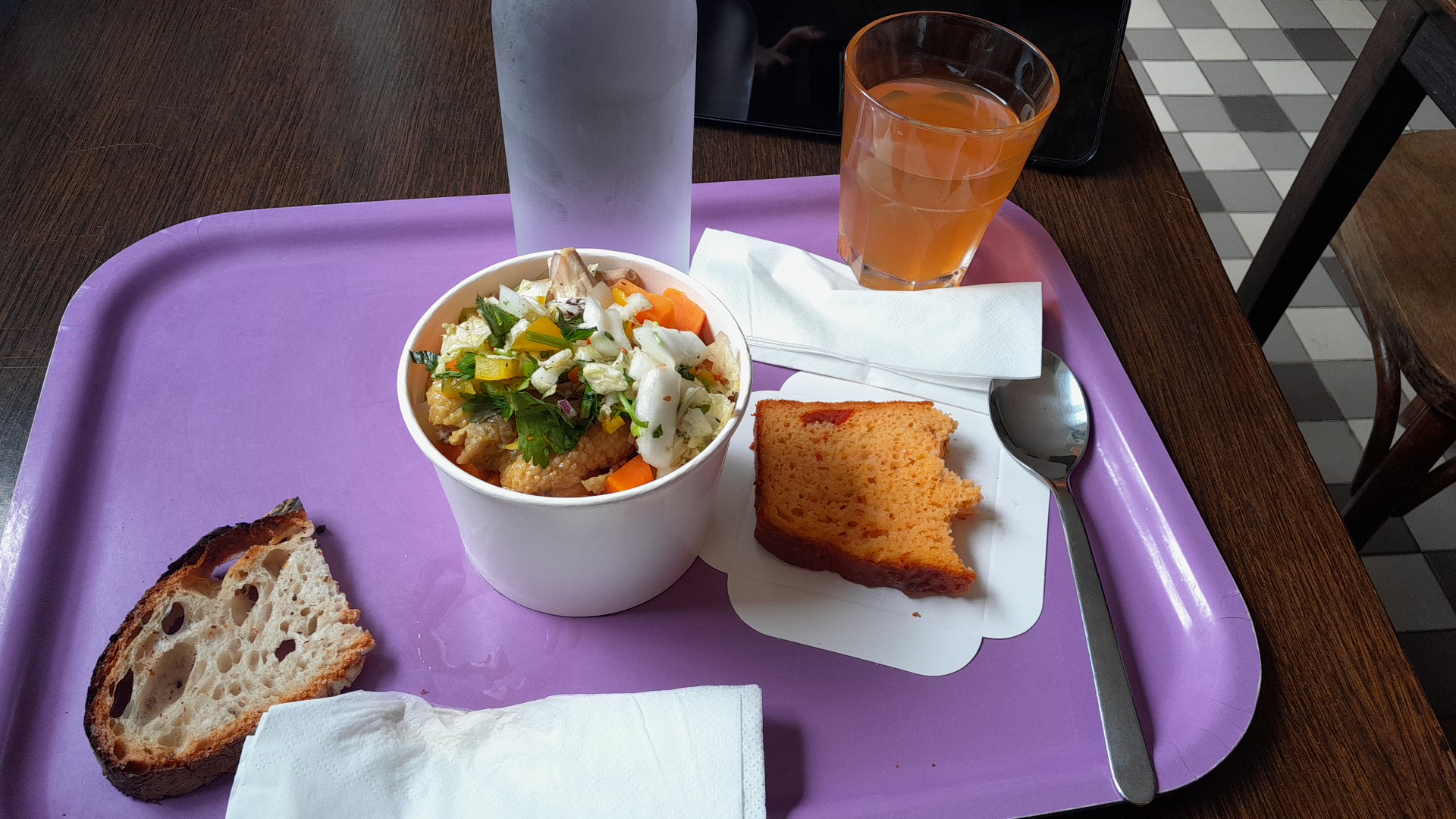 Adresse de quartier très sympa. Plat, soupe, cake du jour. Nous avons mangé un curry coco crevettes très bon ! Tout est frais et fait maison c'est agréable.