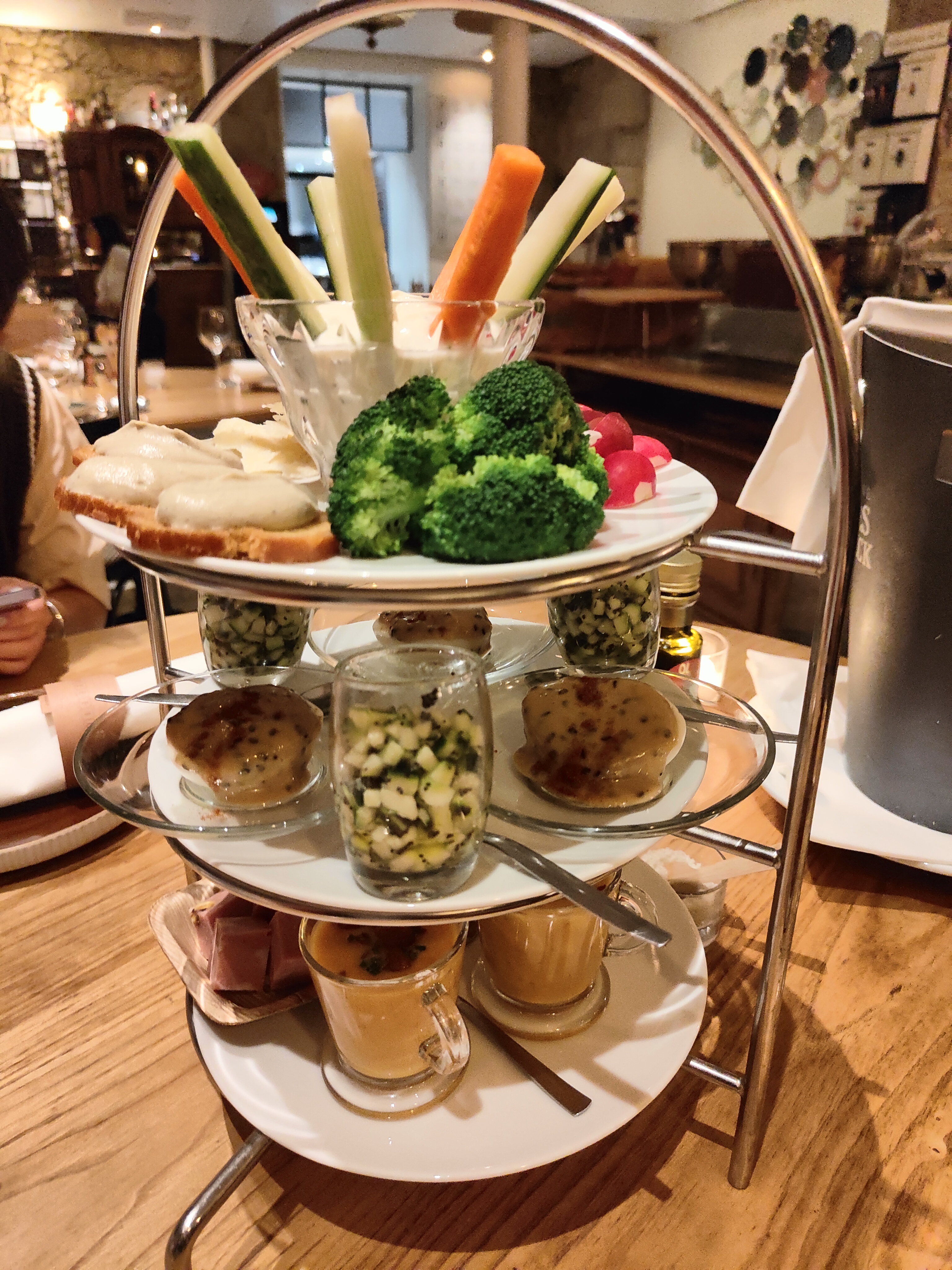 Une expérience tellement unique. Le menu propose 4 plats principaux au choix. Le cuisinier vient à votre table vous présenter la tour apéritive qu'il a créée, un plat de dégustation variétale. Vous pouvez dire que les gens qui travaillent ici aiment vraiment ce qu'ils font et sont fiers de la nourriture qu'ils servent.