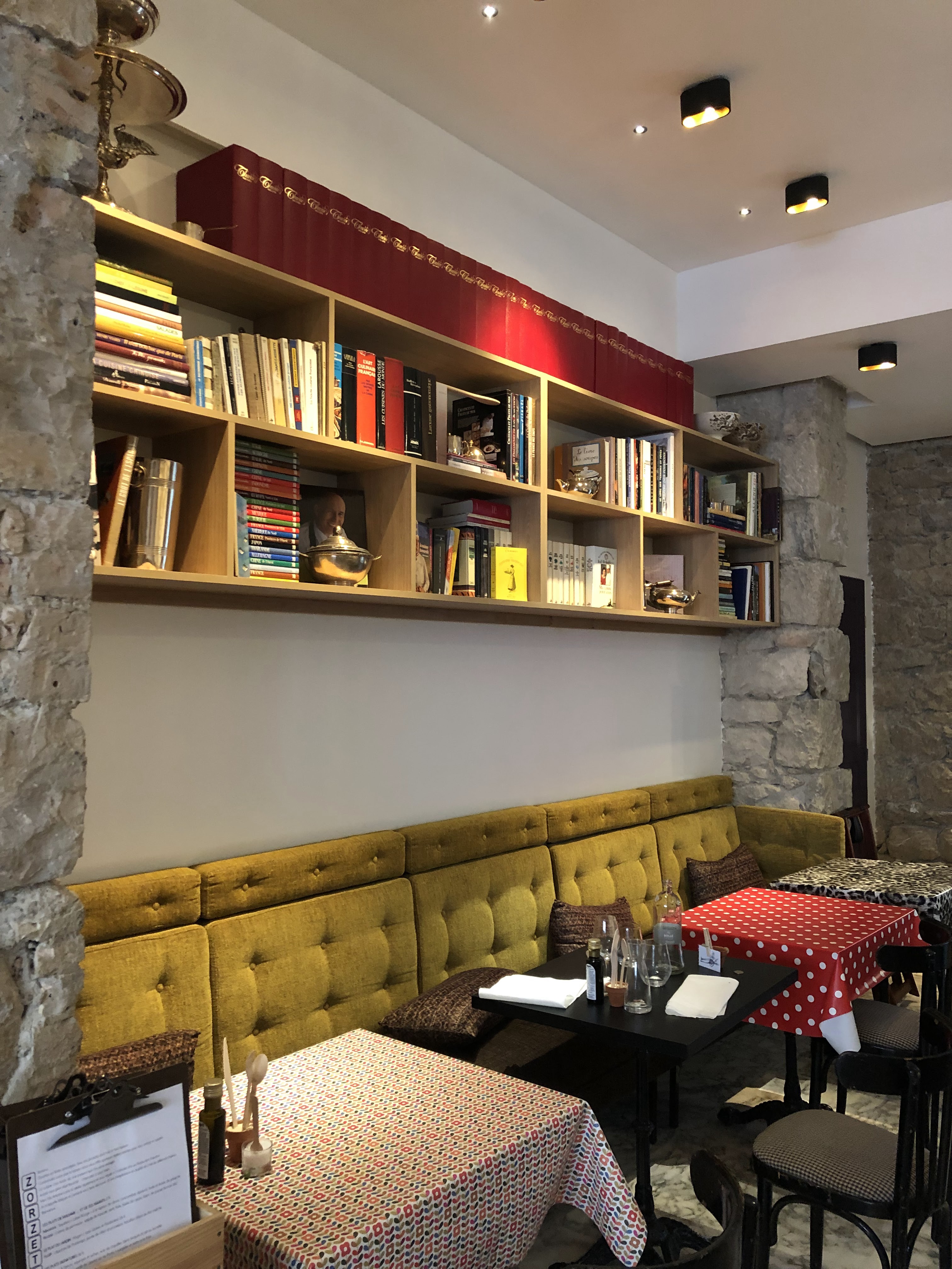 Excellent et original. Le patron barbu est un personnage haut en couleur et attachant. Présent mais pas trop, il anime et donne une âme au lieu. Les coquillettes au fois gras, jambonneau et à la truffe est un plat au plaisir coupable dont qu'on voudrait manger tous les jours. Ambiance comme dans le salon d'un ami avec ces livres au mur et ses vieilles machines mais avec des desserts signatures au centre pour aiguiser les appétits. Le panetonne façon pain perdu est un régal (mais l'ensemble un peu trop sucré).