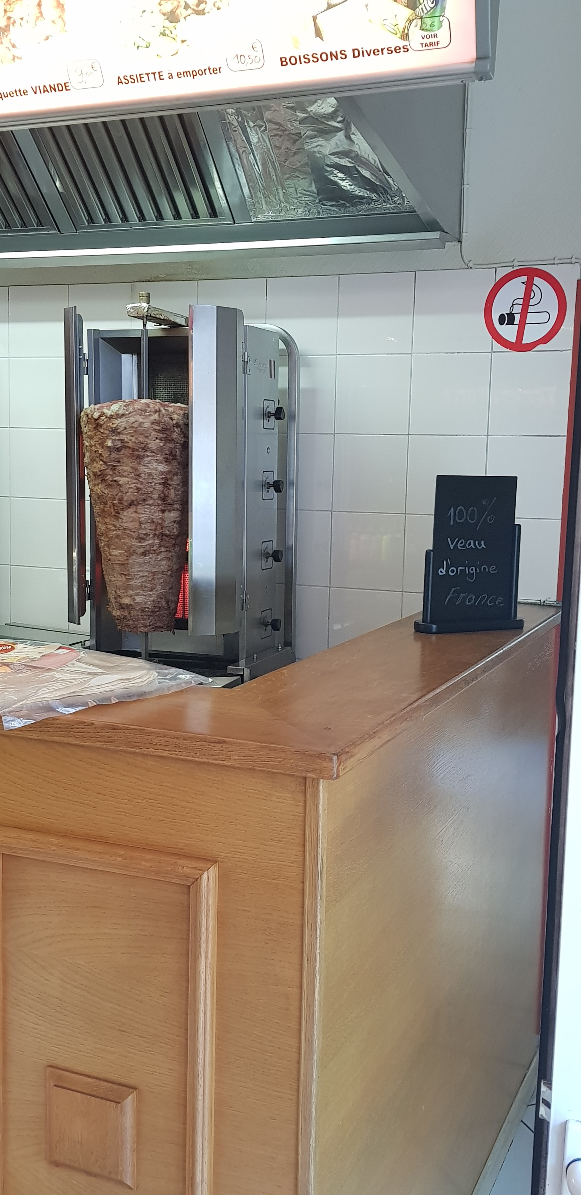 Le personnel est sympathique, le prix est correct, le pain est bon, les légumes aussi, la sauce blanche est délicieuse (ça ne m'étonnerait pas qu'elle soit faite maison). Et effectivement la broche est bien faite maison. Cela se reconnaît par la forme de la broche (plus large vers le sommet), mais malheureusement la qualité de la viande ne suis pas... comme quoi fait maison ne veut forcément dire grande qualité. Viande trop grillé, c'est bien pour ceux qui aiment, mais pour une clientèle avec des goût divers mieux vaut une viande bien cuite mais pas trop grillé. C'est du 100% veau, la viande n'est pas mauvaise mais elle est particulière. Je vous déconseille si vous n'êtes pas fan de ce type de viande. Elle est élastique, bcp de gras, un goût fort et prononcé... c'est la première fois que je n'ai pas osé finir un kebab. Je pensais que la viande était rance, mais non, mon frère m'a dit que c'était le goût du veau. C'était la 1ère fois que j'en mangeais. Donc ce restaurant n'y ait pour rien, là il s'agit de goût personnel. Je préfère plutôt la viande de kebab standard mélangeant plusieurs viande : la dinde, le boeuf, le mouton, etc.