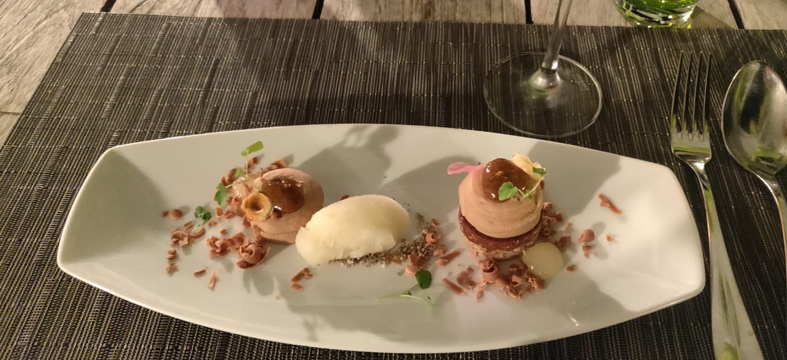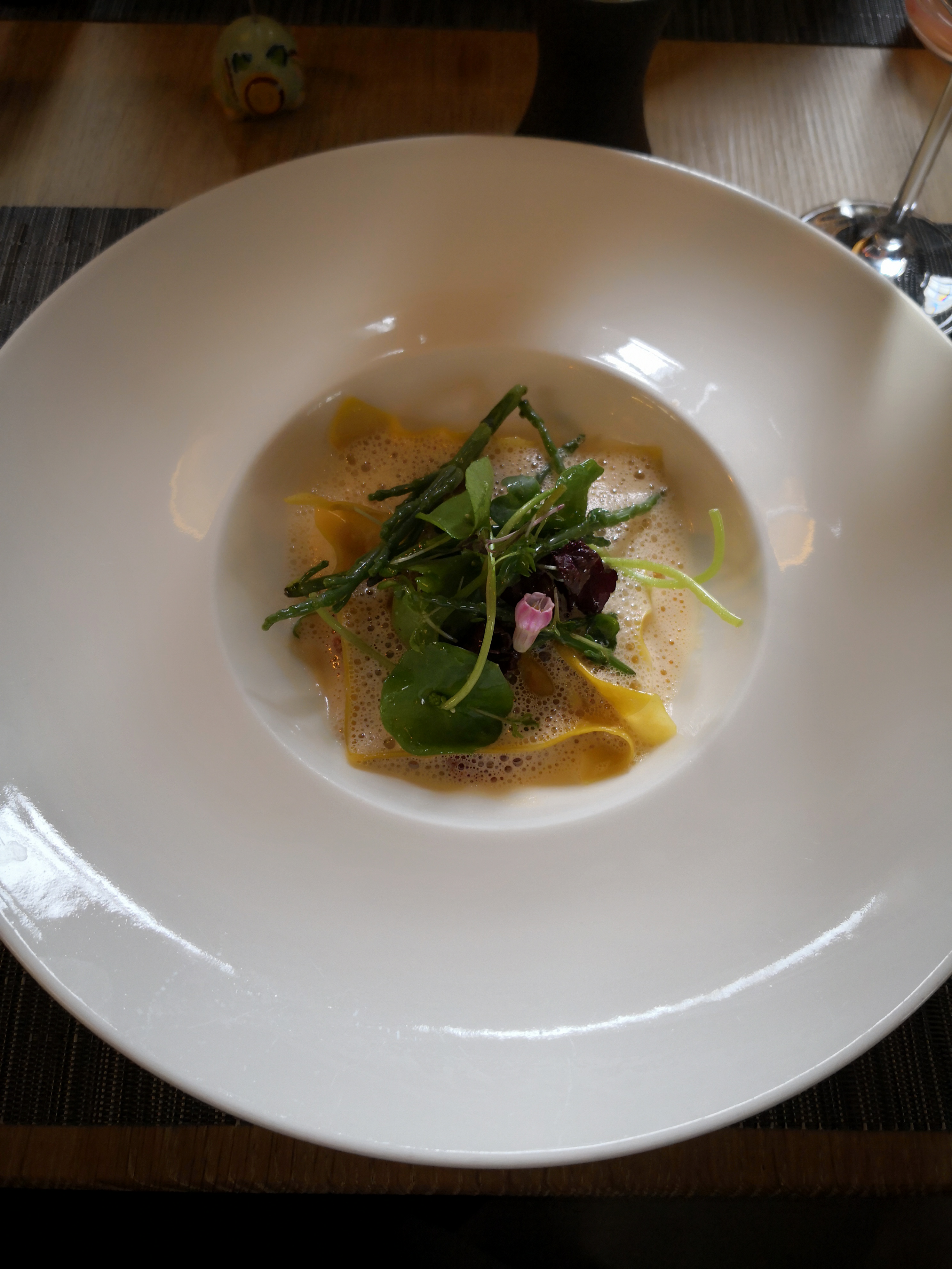 Dîner décent au Zuem Ysehuet. Je n'étais pas un grand fan du petit pois. Le black Angus était très bon, tout comme le dessert à l'exception du perlage aromatisé à la listerine en accompagnement, qui n'était pas pour moi. Bon accord vin aussi. Cela aurait été bien de s'asseoir dehors, mais le temps ne le permettait pas... peut-être la prochaine fois