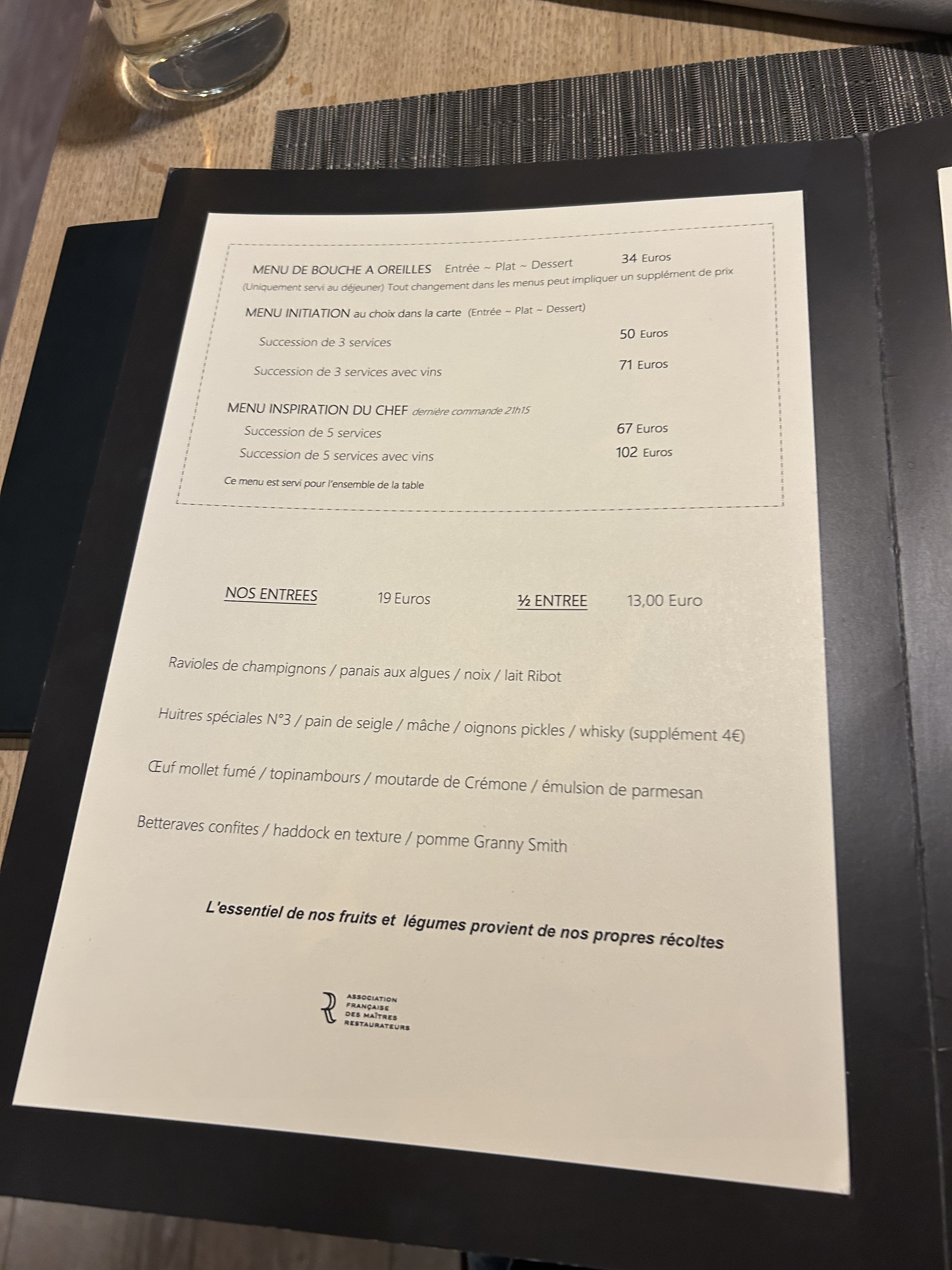 Nous avons beaucoup apprécié ce repas. Nous avions une exigence végétarienne et nous avons été ravis des plats servis, de l'entrée au dessert. Mention particulière pour le sommelier très sympathique avec qui nous avons eu des échanges très agréables.